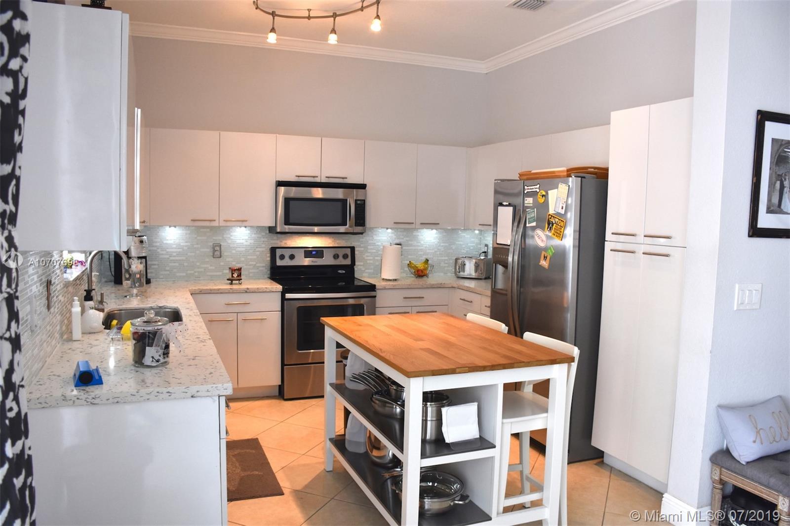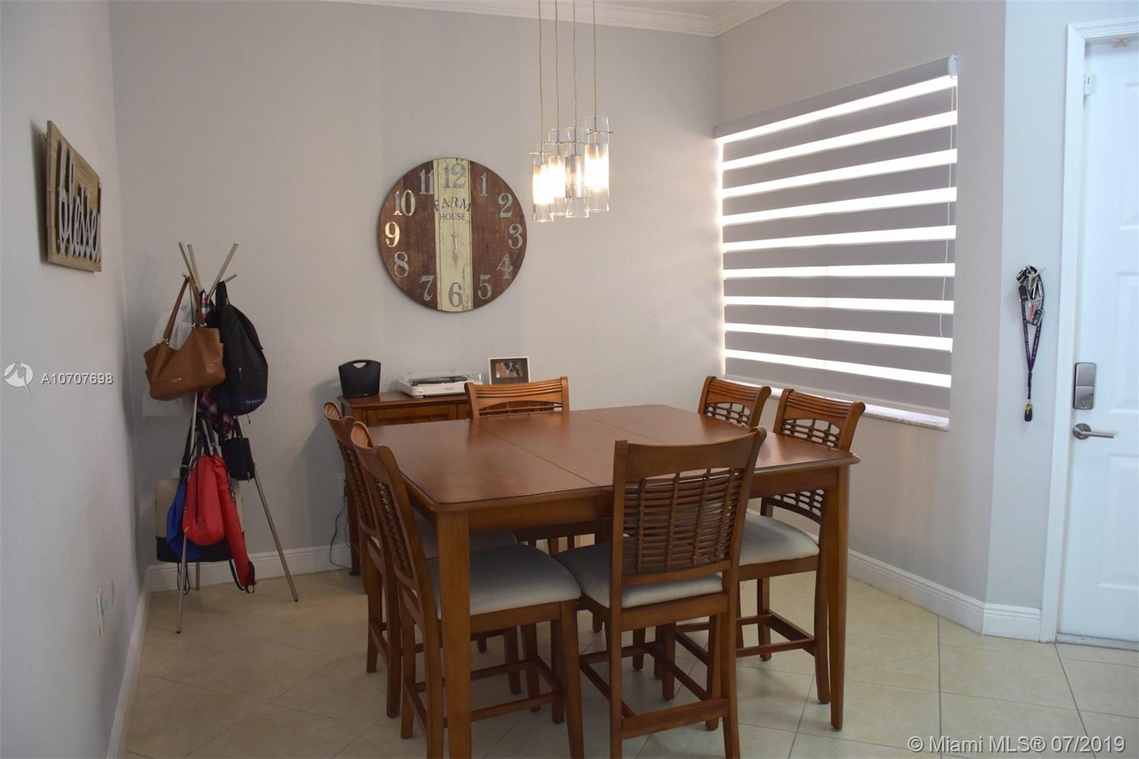 BRIGHT AND MODERN, 4 bedroom, 2.5 bathroom townhome in the desirable Silver Falls community. Crown molding throughout the house. Upgraded kitchen with quartz countertops. CUSTOM zebra shade. Upgraded bathrooms. Spacious master suite with tray ceiling and TWO walk-in closets with built-in organizers. Upstairs laundry with newer washer and dryer. Modern stair railing. Beautiful back patio with privacy fence. Accordion shutters for every opening. Impact garage door and front door. Spacious two-car garage with new lighting and ceiling storage rack. HOA fee includes: cable TV, landscaping maintenance, insurance (exterior walls and roof), 24 hour guard gate and wonderful community amenities( tennis, and basketball courts, clubhouse, pool and playgrounds). Truly move-in ready. Bring your offers!