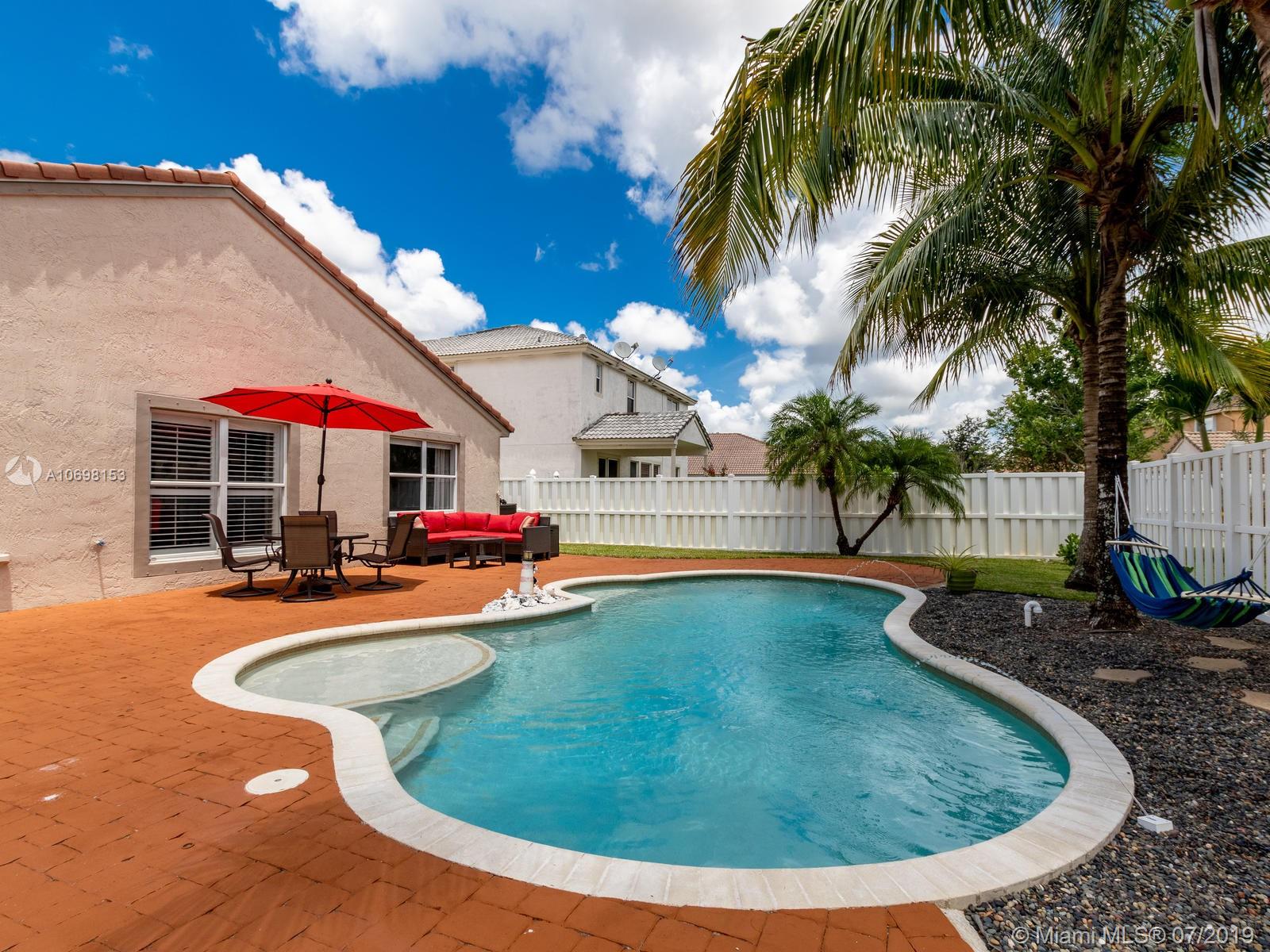 Located in this exclusive community of "PEMBROKE FALLS" sits this nicely updated, move in ready, 3 bedrooms 2 bathrooms, pool home. This one story open concept home is in the 'BIMINI' development and features remodeled kitchen and bathrooms, updated ceramic floors, and a welcoming pool as you relax in the backyard. HOA includes, cable, alarm, internet and security. This community has the most beautiful Clubhouse with pool and Tennis court, Ball Room, gym, Basketball court and Aerobics room. Very close to I-75, shops and restaurants and walking distance to schools. Property is price to sell...Don't miss the opportunity to move here.