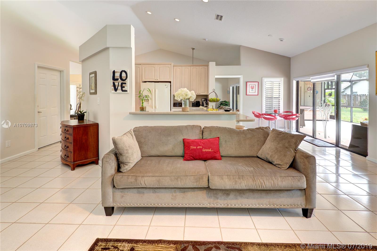 Come fall in love with this Gorgeous 4 bedroom 2 bathroom home nestled in one of the most sought after locations of Cooper City. This Gem features bright and spacious floor-plan with high volume ceilings and a perfect layout. The impressive water views make the living room the perfect place to relax. Large family room opens to the roomy kitchen with high volume cabinetry and Corian countertops. Just off the kitchen is a comfortable breakfast nook displaying expansive views of the lake and charming backyard. Unwind and adore the tranquil views in this Oversized Master Suite with large walk-in closet and cozy bathroom. The windows and doors are fashionably completed with designer window treatments and Plantation Shutters Outside features an over-sized screened-in patio and huge backyard.