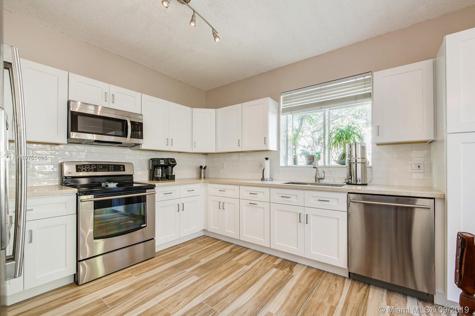 Generously remodeled and freshly painted stunning town home on a quiet tree-lined cul-de-sac, providing a very private street in a popular gated community. This home radiates owner pride in the character details, and updates. Close proximity to the beach, Downtown Hollywood, Airport, shopping and West Lake Park. Home features french doors, new hurricane impact front door, brand new kitchen remodel with stainless steel appliance's including a gorgeous wood look tiled flooring and rock wall. West Lake Village, like a private resort with loads of amenities and low HOA fees include large health club, Billiard room, clubhouse, management office, covered kids play area and roving security patrol. This lovely gem is a pleasure to show.