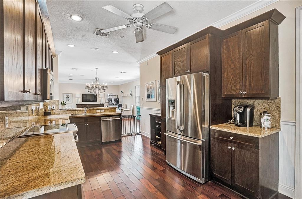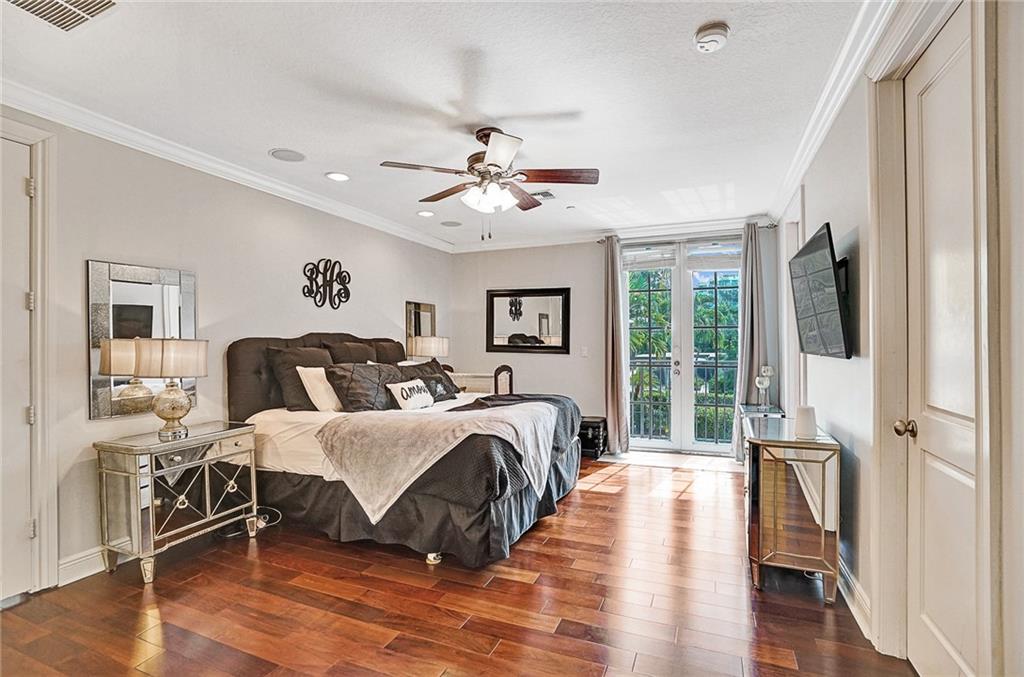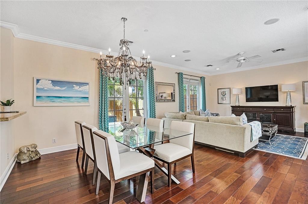 PRICED TO SELL!! Stunning 4/3.5 town-home with private swimming pool and tranquil waterfall. Largest unit in the complex with gorgeous wood flooring throughout, impact resistant windows/doors, 2 new A/C units, lots of storage and ceiling fans and speakers in every room! Large eat in kitchen with stainless steel appliances, wood cabinets, and granite counter-tops.
