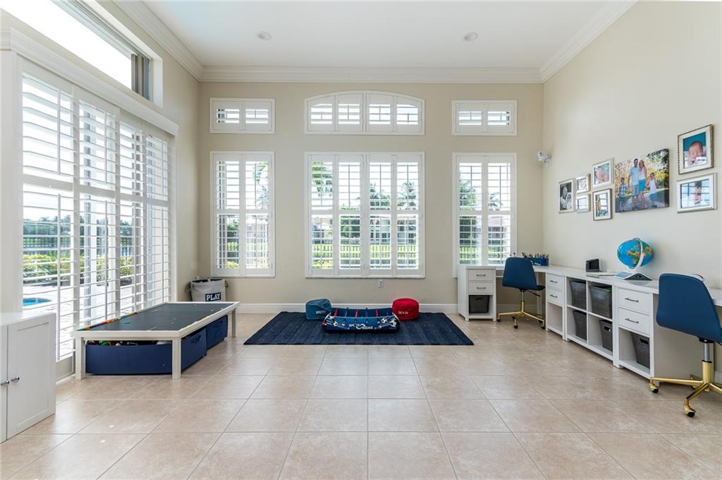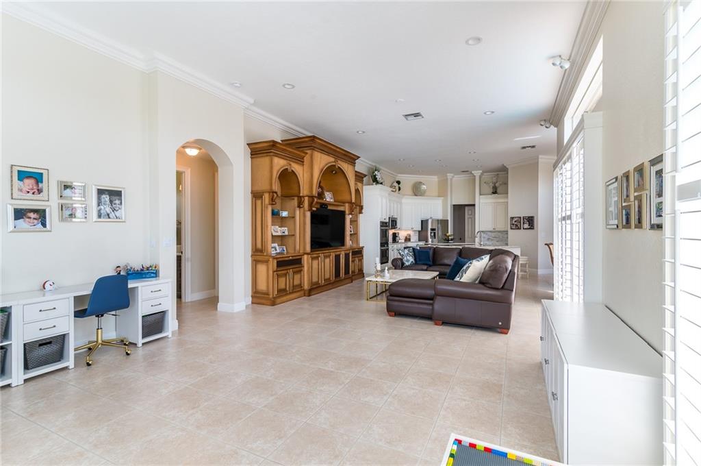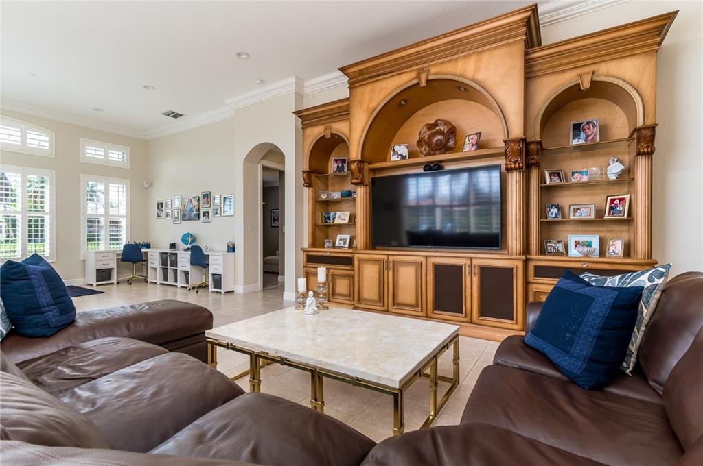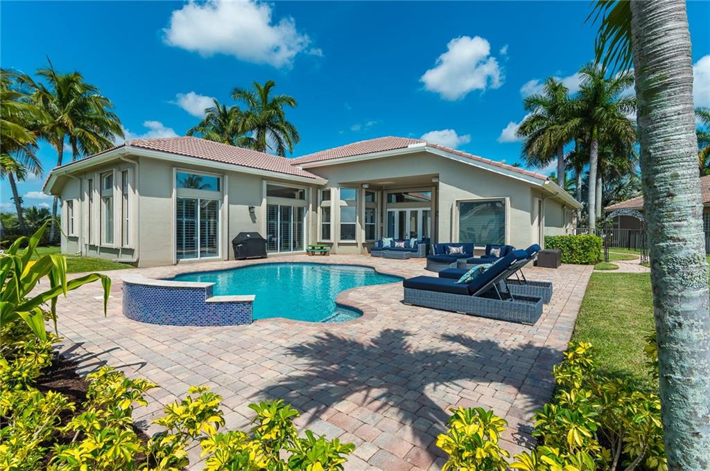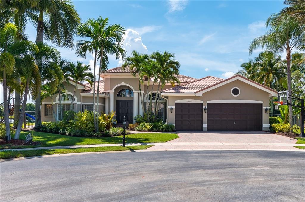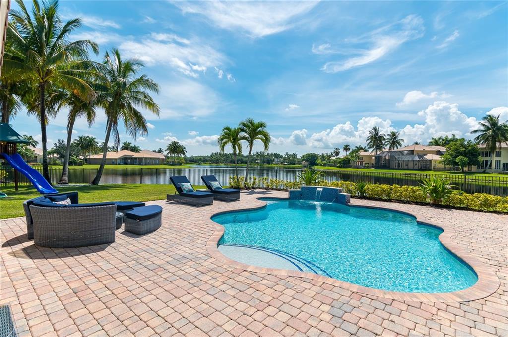 Magnificent & spacious split floorplan on the BEST lakefront, cul-de-sac lot. Impeccably maintained & renovated. Oversized kitchen with quartzite counters, elevated cabinetry, glass cooktop, double wall oven & French door refrigerator. Updated bathrooms. Stunning 12 ft. white quartz stone wall with electric fireplace. Wine bar. Surround sound speakers. Gorgeous built-in entertainment center in family room. New AC unit & water heater. Plantation shutters. Crown moulding. Hardwood floors in dining room. New plush carpeting in bedrooms. Dual side yards. Accordion shutters. Multi-level playset. Resurfaced pool with custom waterfall overlooks expansive lake. You absolutely will not find a more breathtaking view. Similarly upgraded model costs $1.5+ million to build new. A MUST SEE!