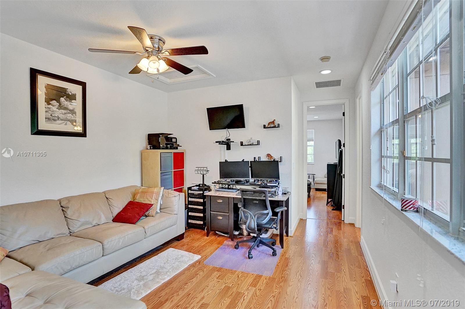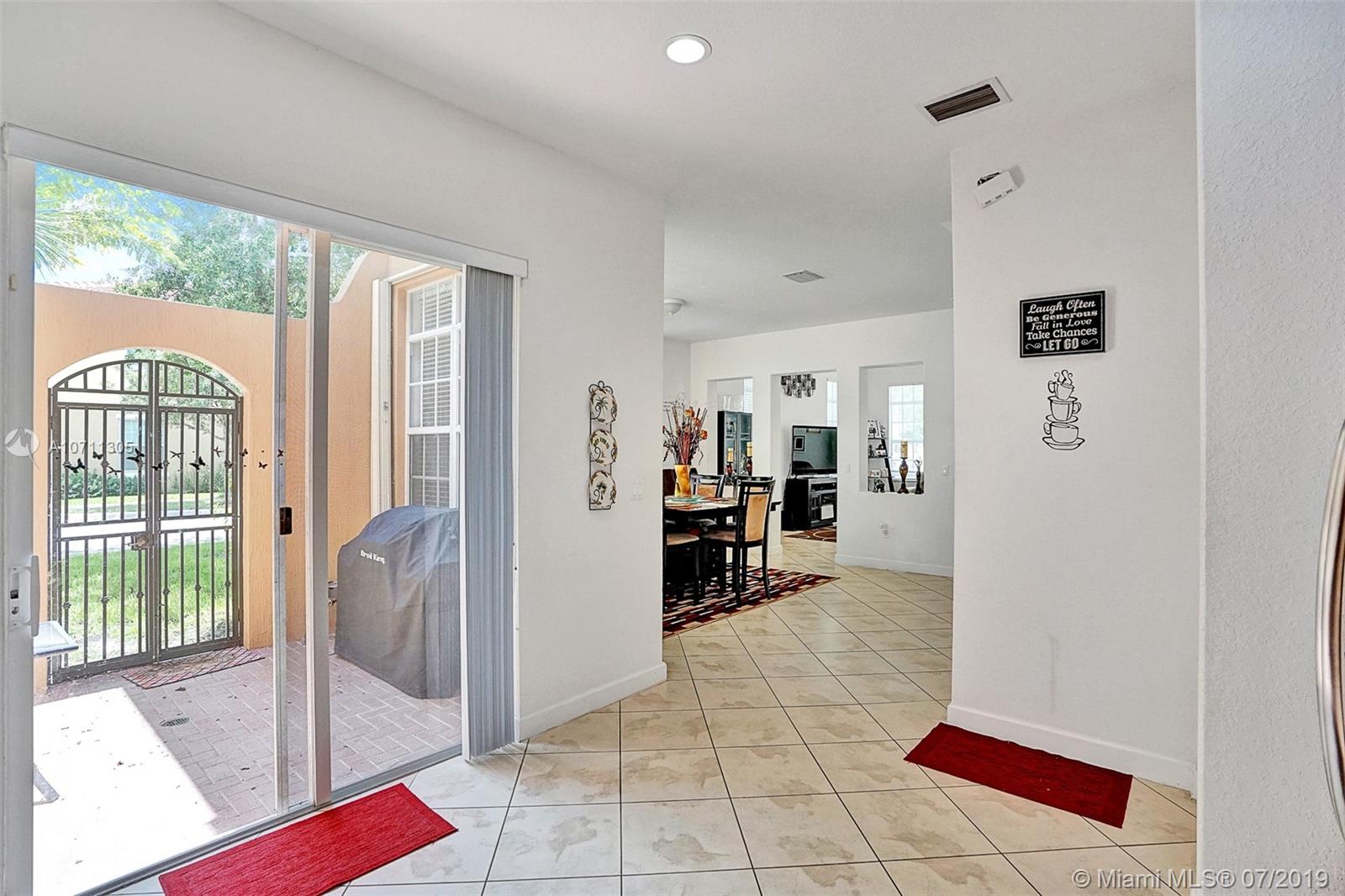 Come and see this amazing corner townhouse with high ceilings, 2 patios/high ceilings. Lots of natural light coming through the windows. Ceramic tile in diamond shape throughout the entire first floor. All living areas have over the 10-foot tall ceiling. Open concept kitchen updated with wood cabinets, granite countertop/backsplash plus professional SS appliances. The second floor has laminated flooring with a loft that could be used as an office/play area. The master bathroom is a great size with a walk-in closet overlooking the reserve. The master bathroom has dual vanities with granite countertops. The association includes cable, alarm, Fast internet, gate, rover, external maintenance, roof maintenance The community offers a clubhouse, Gym, pool, 24 hours security and child play area.
