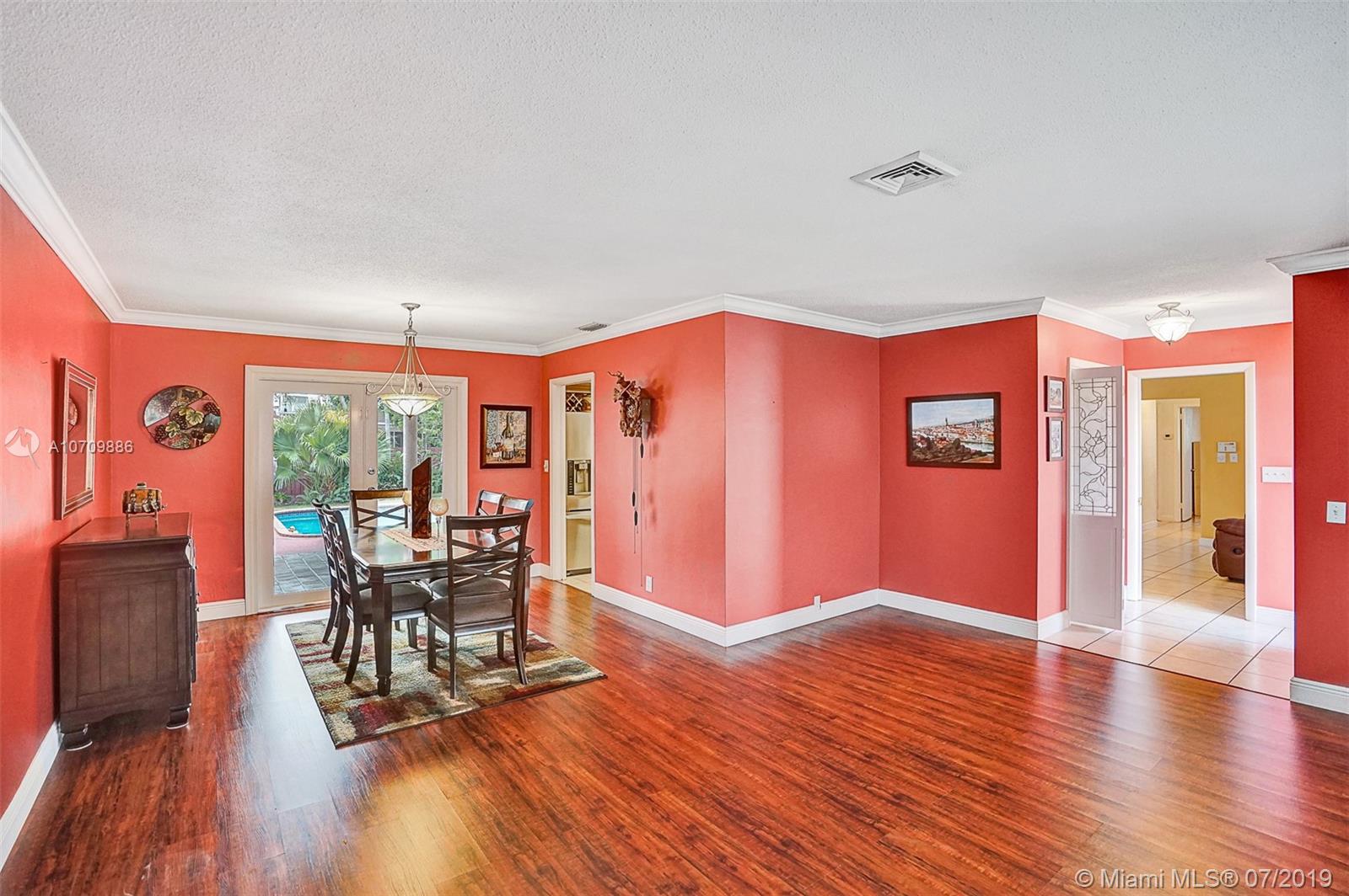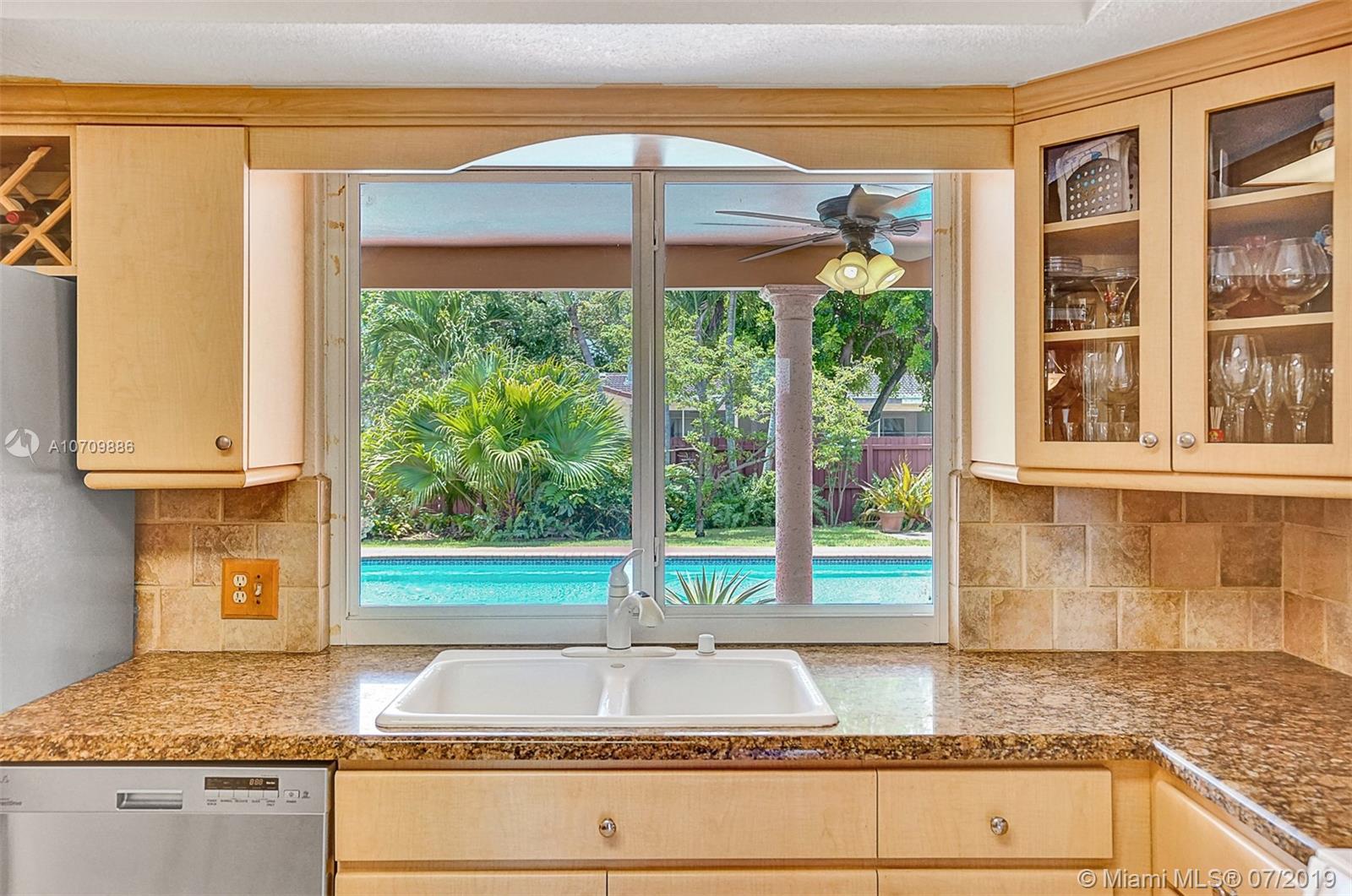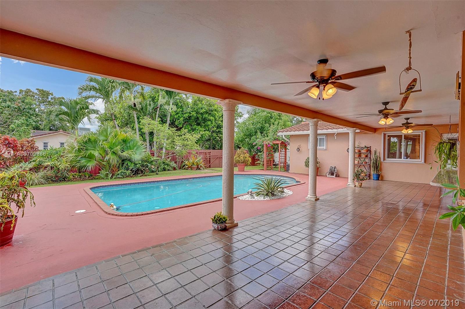 LIFETIME HOME IN A BEAUTIFUL SETTING! Here is the opportunity you’ve been waiting for in a great Hollywood Hills location. This home welcomes you with lots of natural light, and it has a well distributed layout. Featuring 3 beds/2 baths, formal living and dining room, updated kitchen, huge family room, utility-laundry room and 2 car garage. The kitchen features mica cabs, granite tops, pantry, beautiful pool area views and is big enough for a breakfast table. The pool area has a snack bar and a huge overhang perfect for entertaining family and friends. Storm ready with IMPACT WINDOWS installed in 2016 and ACCORDION SHUTTERS installed in 2012. In addition, Lush landscape backyard, stamp concrete circular driveway, 2014 central air and 2016 water heater. ADAM AND EVE NEVER HAD IT SO GOOD!