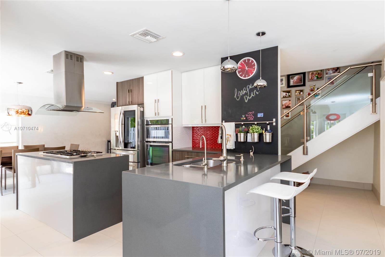 Beautifully updated home with BRAND NEW roof being installed prior to closing! Spanish porcelain tile & hardwood flooring run throughout the home - NO CARPET! Kitchen has been fully renovated! Built-in cabinets w/bar divide dining room & living room, which is currently utilized as an office/den. All bedrooms are located upstairs, along with full bath. Oversized master suite features walk-in closet and fully updated bath with jetted tub & separate shower. Fully-fenced backyard has large open travertine patio & gas-heated salt water pool! Other features include hurricane windows & doors, pre-wired surround sound in living areas & backyard, custom cabinetry in ALL bedroom closets, whole-house reverse osmosis water filtration, gas range & dryer, electric wired for generator use, & MORE!