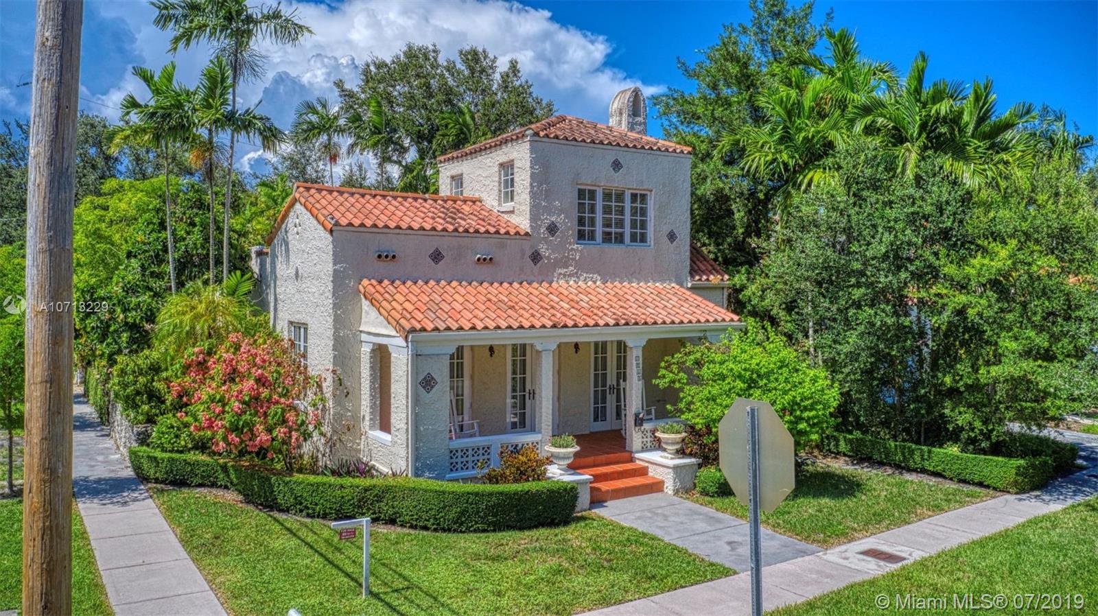 Gorgeous Old Spanish style house on a corner lot. 3/2.5 with 1/1 guest house. 9.5 foot ceilings and many windows make this a bright and airy home. The beautiful living room with french doors leads to covered porch. Spacious bedrooms with lovely colors and wood flooring. Master bedrooms with walk-in closets. Kitchen has stainless steel appliances. Vintage style ceramics in the bathrooms and kitchen. Lushly landscaped backyard with fence. Great Central Gables location in one of the best neighborhoods in town - excellent police force, many historical homes in the area, view of the Biltmore Hotel, close to Granada Golf Course, Venetian Pool, Salvadore Park, Miracle Mile, places of worship and schools. Impact windows throughout and enjoy avocados from your own tree outside the kitchen door!