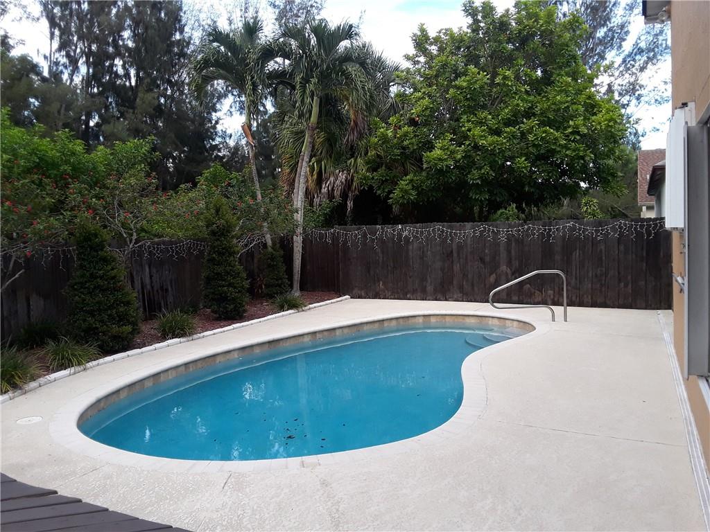 HOME WARRANTY INCLUDED!! Located on a cul-de-sac, this very well maintained, block construction, single family pool home with plenty of privacy awaits you. Vaulted ceilings and hi-hat lighting accentuate your spacious 3 bedroom, 2 bath, pool home with ceramic tile and wood flooring. Updated bathrooms with double sinks, glass door shower in master, and upgraded vanities. Outdoor space is a private oasis with plenty of room to entertain, or just enjoy with family. Screened patio area opens to heated, free form, in ground concrete pool. Completely fenced year yard, decking, and pool area, back up to preserve with no backyard neighbors. Hurricane shutters are custom fit and included. West Palm Beach address, gated community of Foxhall, close to everything! Sold as-is, with right to inspect.