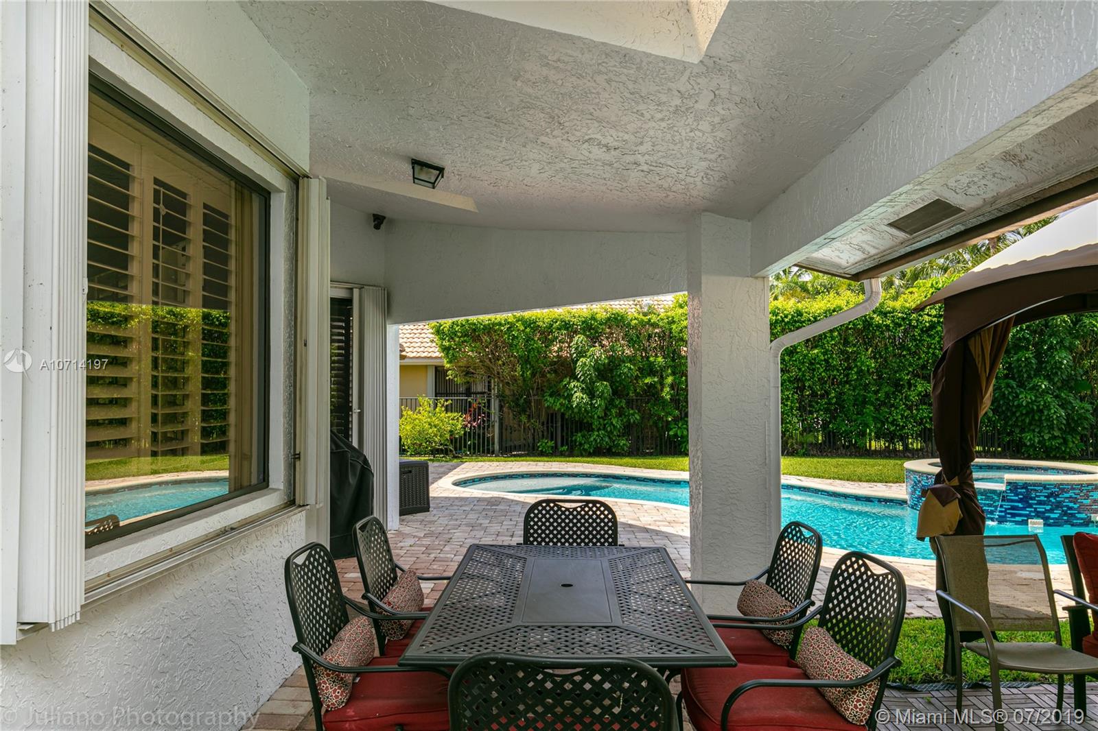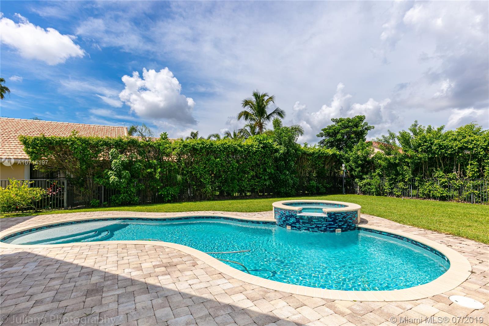 Beautiful house of 4BR/3BA on a private 1/3 of an acre corner lot, Saltwater pool with heater and Jacuzzi. Light, bright & open floor plan. Real wood flooring throughout the social areas, office and in the bedrooms. Upgraded kitchen with wood cabinetry, S/S Kitchenaid appliances & granite counters. Upgraded Bathrooms. Custom closet cabinetry in all rooms. Accordion shutters on all the windows. Custom closet cabinetry in all rooms. 2 air conditioner with 1 year of use. Front door against impact. Roof with 10 years of use. It is a must see!!!
