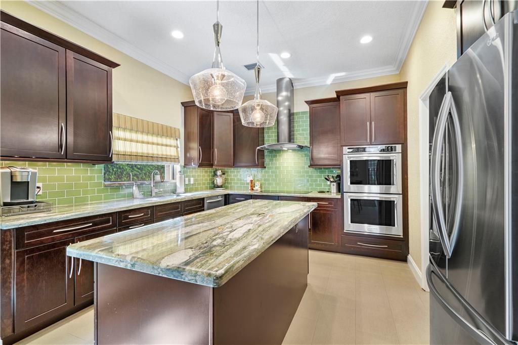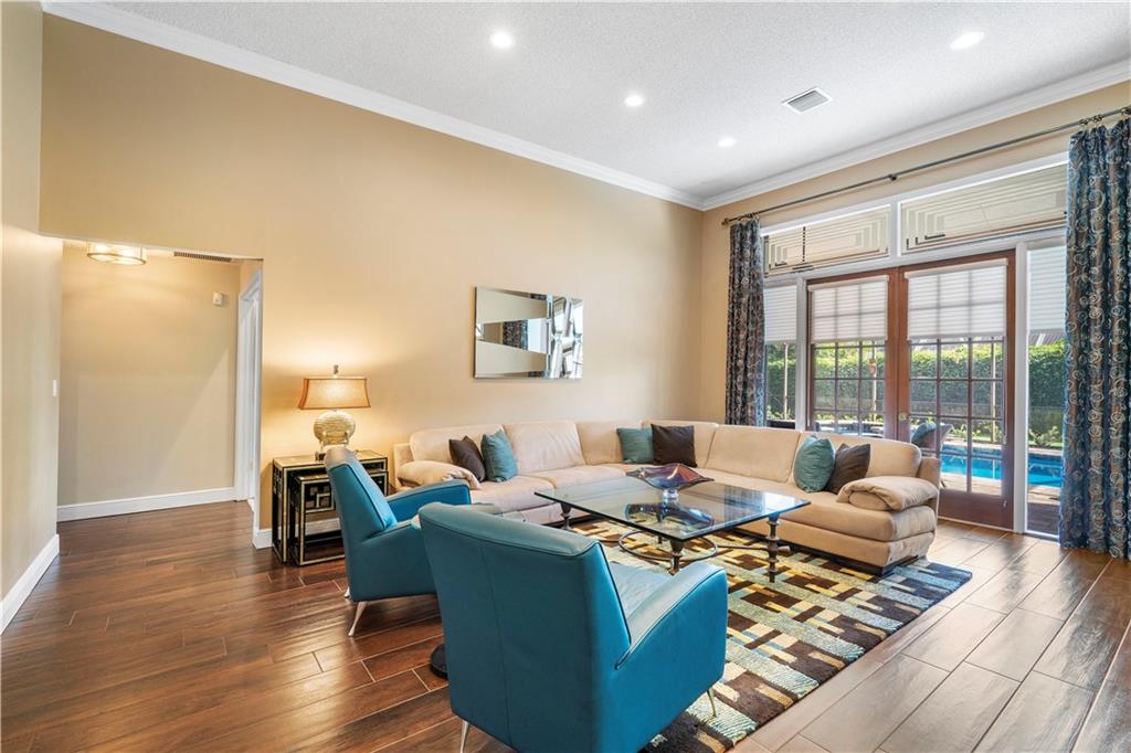 UPGRADES! UPGRADES! Enjoy living in a relaxed and elegant opened environment where no expense has been spared. All the designer finishes were chosen with great care! Crown moldings, 12ft ceilings, open floor plan, three sets of french doors. The kitchen is a chef's dream and makes entertaining easy! Enjoy the large center island KtichenAid appliances: including double ovens, induction cook-top, double draw dishwasher. The spacious master suite has a double door entry, sitting area, custom his and her closets and a beautiful master bathroom w/ over-sized shower and soaking tub. The outdoor living features include an outside cabana bath, diamond bright heated pool, relaxing spa, paver pool deck and the "new" artificial grass in a private setting. This home has the WOW factor in and out!