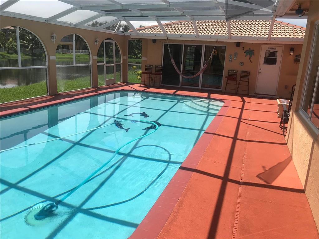Absolutely beautiful and spotless lakefront home. The 4 bedroom and 3 bath home with a pool awaits you in an immaculate and highly sought after community with a fully permitted pool house/guest house/man cave with a living room/kitchen and bathroom. It also has a separate A/C unit. The main house has a large dining room and separate formal living room, a large Florida room with built in TV area and breakfast nook. Lots of counter space in kitchen. Master suite is split from the other bedrooms for privacy. The pool is screened in and overlooks the lake. A/C unit is only 6 months old. There is a community pool and tennis courts. Roads were recently paved with no assessment to residents. Raise your family in this great community with security gates. HOA is only $78 per month.