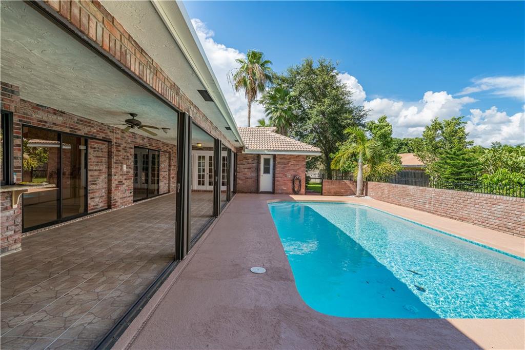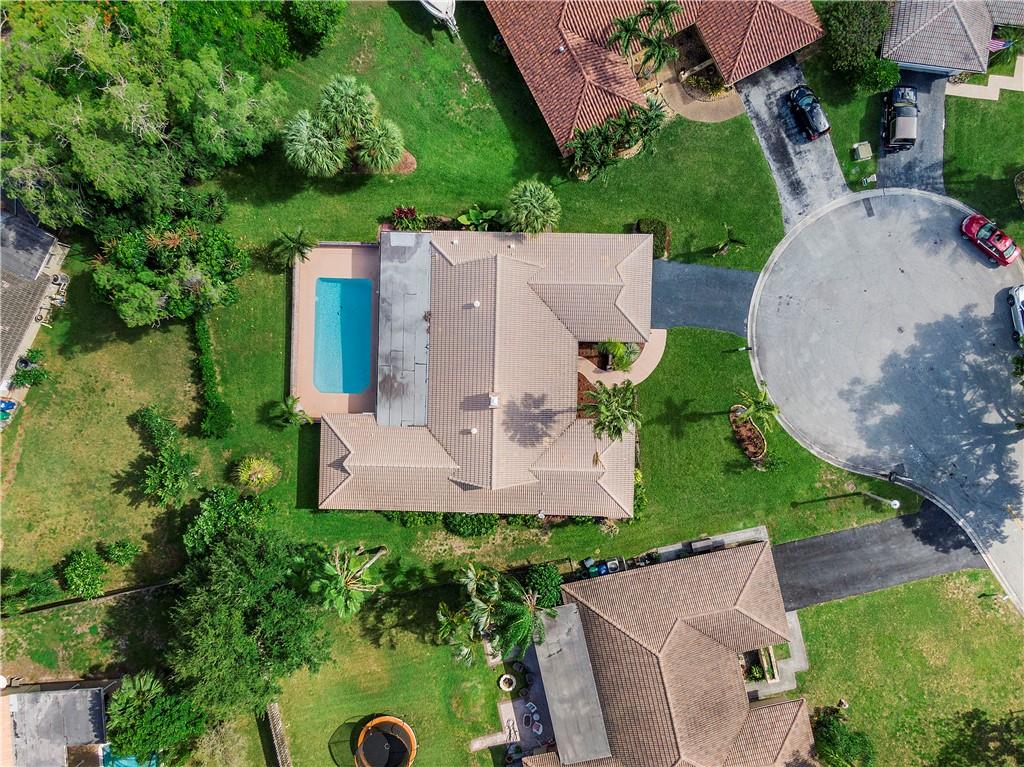 TRULY MOVE IN READY! Light, bright & open floor plan in this spacious 4 bed, 2.5 bath pool home in a cul-de-sac on over 15,500 sq.ft lot w/ lush landscaping & huge yard. TWO (2) NEW A/C units, NEW hot water heater & NEW Diamond Brite in pool. Spacious kitchen w/ granite, large center island, breakfast area & large granite snack/wet bar perfect for entertaining. Separate formal dining room, dual sided coral fireplace, vaulted ceilings, 17" tile throughout (no carpet), freshly painted & large laundry room w/storage. Master Suite features french doors open to pool area, dual vanities, huge walk-in shower & Cedar lined custom closet. New tiled patio with room for built in BBQ area, NEW hurricane Impact garage door & accordion shutters throughout this beautiful home! NO HOA & great schools!