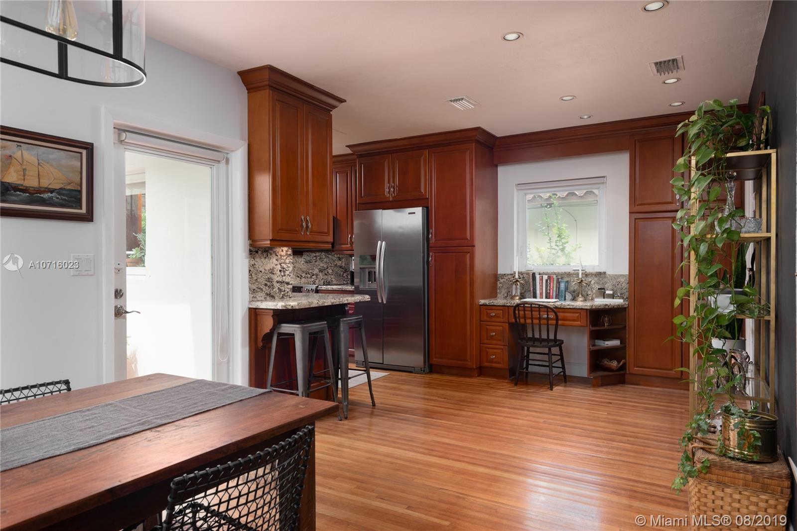 Beautifully updated home filled with charm is located in the highly coveted South Coral Gables area. The home features wood floors, lots of natural light, a gourmet kitchen with granite counter tops and backsplash, hurricane impact windows & doors, and security cameras. There are 2 bedrooms and 2 baths, both bathrooms have been remodeled. Garage has been converted to an office/den. The backyard features a patio and area to entertain family and friends plus a mango tree bearing delicious fruit. Enjoy the close proximity to downtown Coral Gables, The Shops at Merrick Park, The University of Miami, Merrie Christmas Park, downtown South Miami & Coconut Grove. Within steps of the soon to be developed Maggiore Street Park. Short commute to Brickell/downtown Miami.