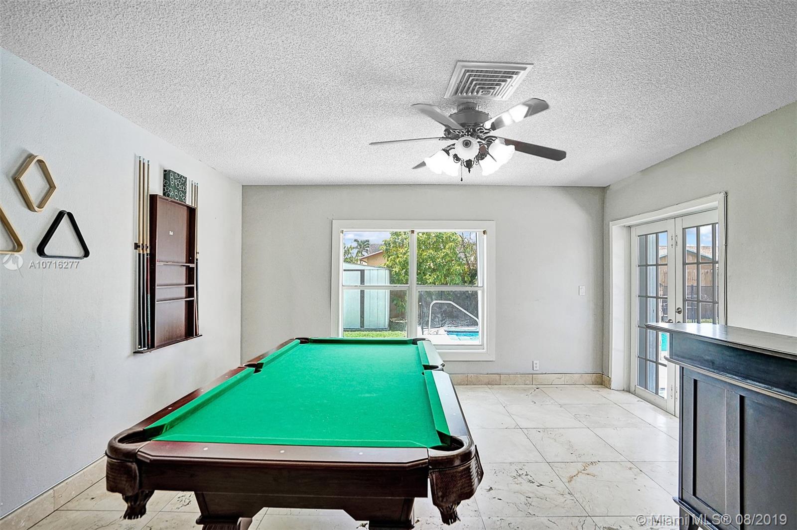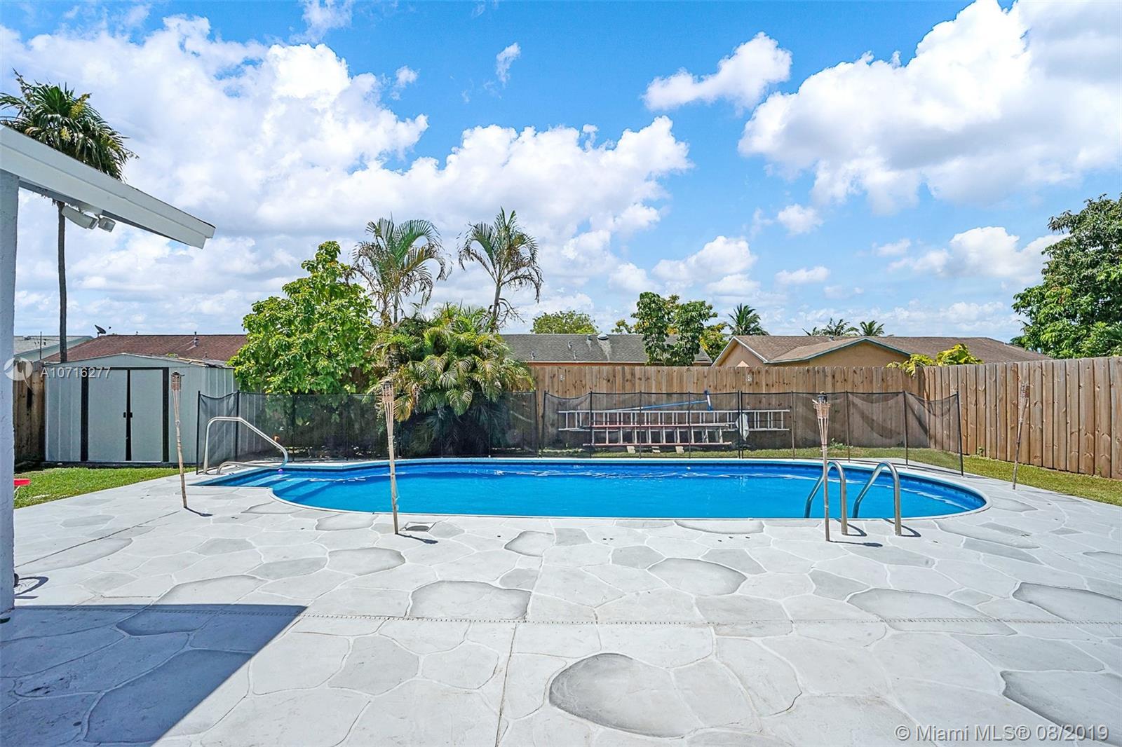 Amazing opportunity to own a beautiful 4/3 POOL home in Millers Sunrise Estate in West Sunrise! This beauty is nestled away on a quiet street on an oversized lot with a large inviting pool perfect for entertaining. Home features an open concept floorplan, volume ceilings, beautifully upgraded bathrooms, marble floors throughout. Painted in modern neutral colors. Large eat-in kitchen with stainless steel appliances. Fully equipped with accordion hurricane shutters. Spacious back yard with shed for storage. Newly fenced in backyard for added privacy. Centrally located within minutes of Sawgrass Mills Mall, schools, parks, shopping and places of worship. No association fees. Easy to show!