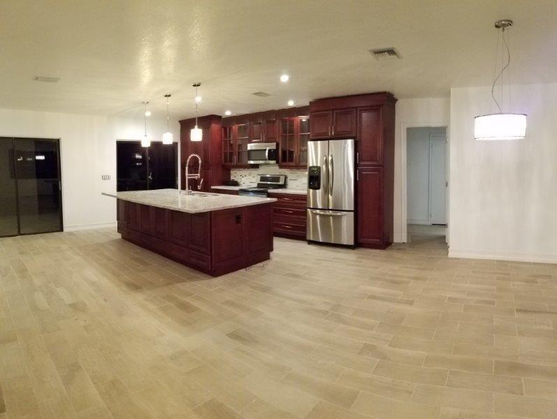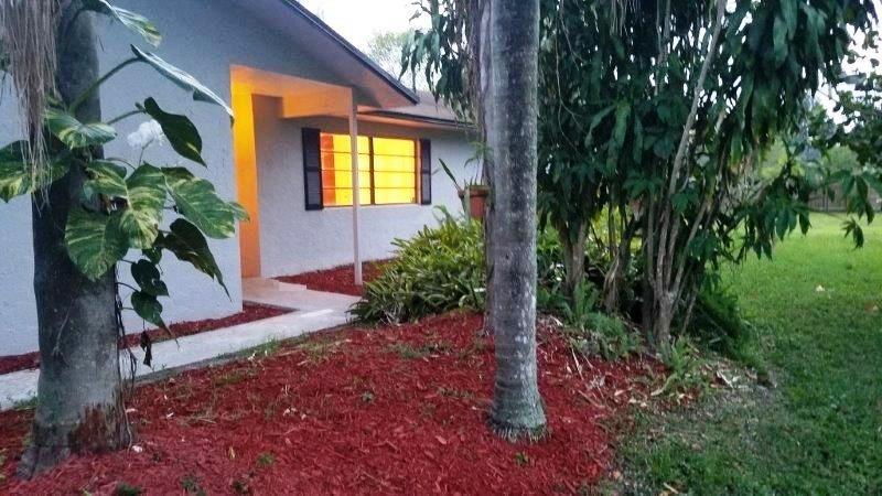 Great value for home in area. Private & spacious 4/2 pool home, 2 car garage, oversized acre lot. Renovated open floor plan w/ cherry wood kitchen cabinetry, oversized granite countertops w/ seating area. Huge great room opens to screened in pool-perfect for family or entertaining guests. Spa style bathrms. Home is sunny & bright. Completely privacy fenced. Lush palm and fruit trees. Best school district.