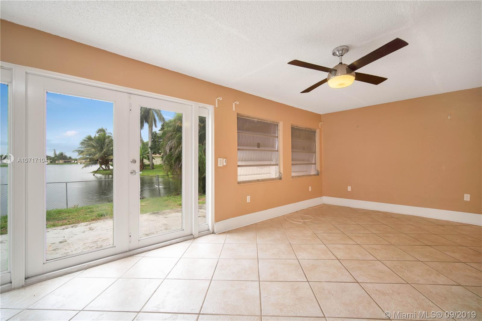 This spacious home has 3 bedrooms + a den/office, 2 bathrooms, a 2-car garage and a circular driveway. It sits on a lake front lot. Beautiful kitchen with newer appliances and 42" wood cabinets. Recently painted with new 16" tile in the living areas. Upgraded bathrooms, Upgraded electrical panels, new electric water heater, walk-in closets, French doors, hurricane shutters, etc. Spacious yard with room for a pool. Great deal! Motivated sellers.