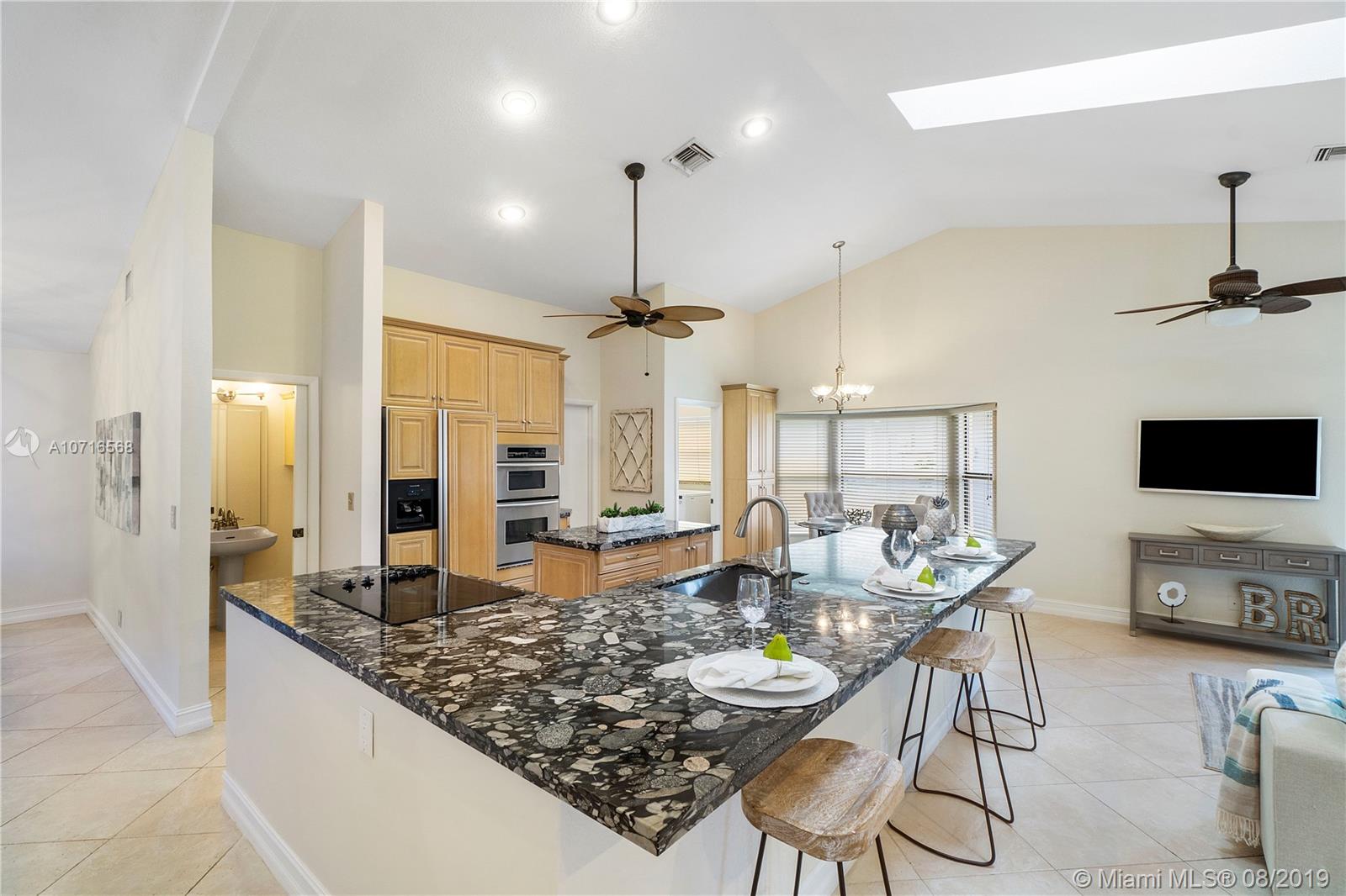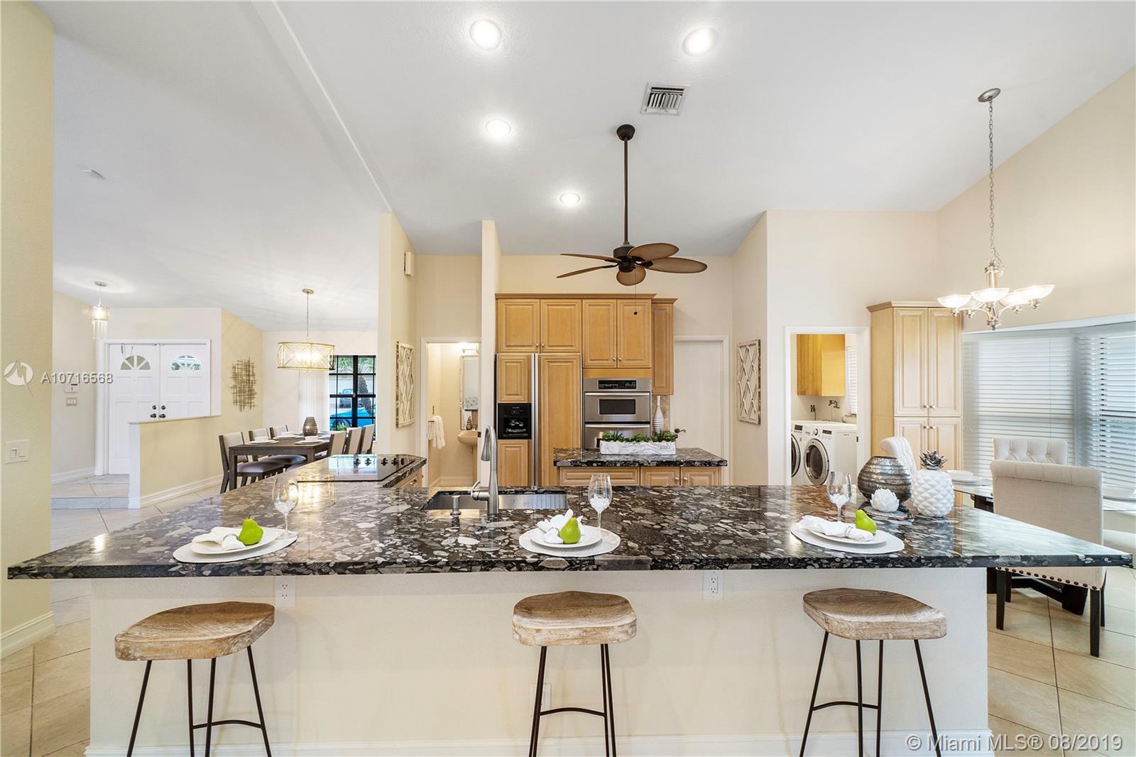 UPDATED, LIGHT & BRIGHT, OPEN FLOOR PLAN! 5Th Bedroom is BONUS ROOM, can be used as office, baby nursery, or can become extended Master Suite! Home features: Diagonally laid tile, NO Carpet, Fresh Paint, NEW kitchen remodel with thick slab granite, LED lighting, and Open Floor Concept making this home perfect for entertaining guests and family. New Travertine Pavered Pool deck (2016) along with Diamond Brite.(2016) New Solar Heating Pool Panels and New Pool Pump. Newer Washer and Dryer. Remodeled Master bathroom with Frameless Shower and dual shower heads. Huge master Closet with cabinetry. Hurricane Shutters and Hurricane Impact Garage door. Home is situated on a large corner lot.