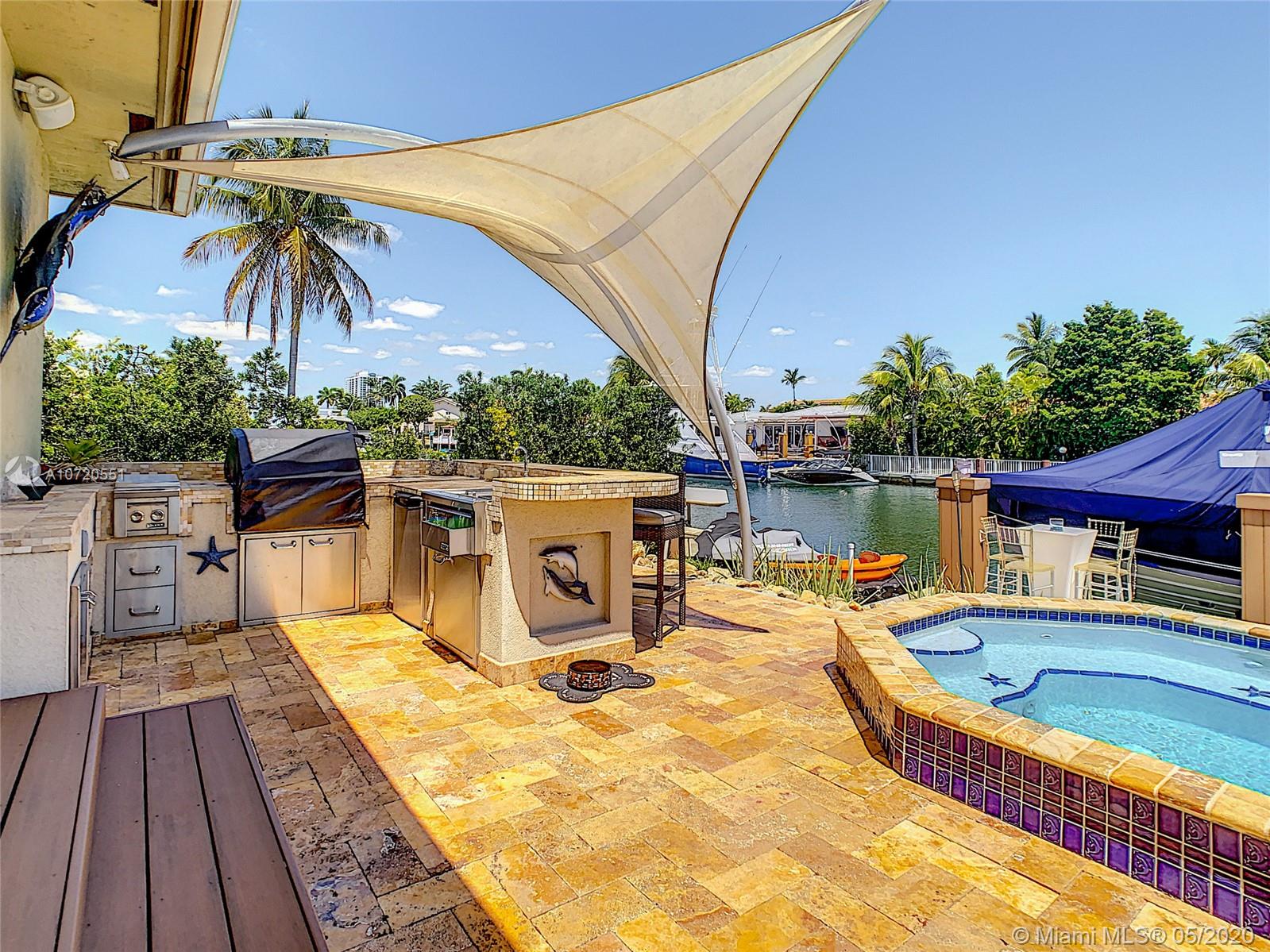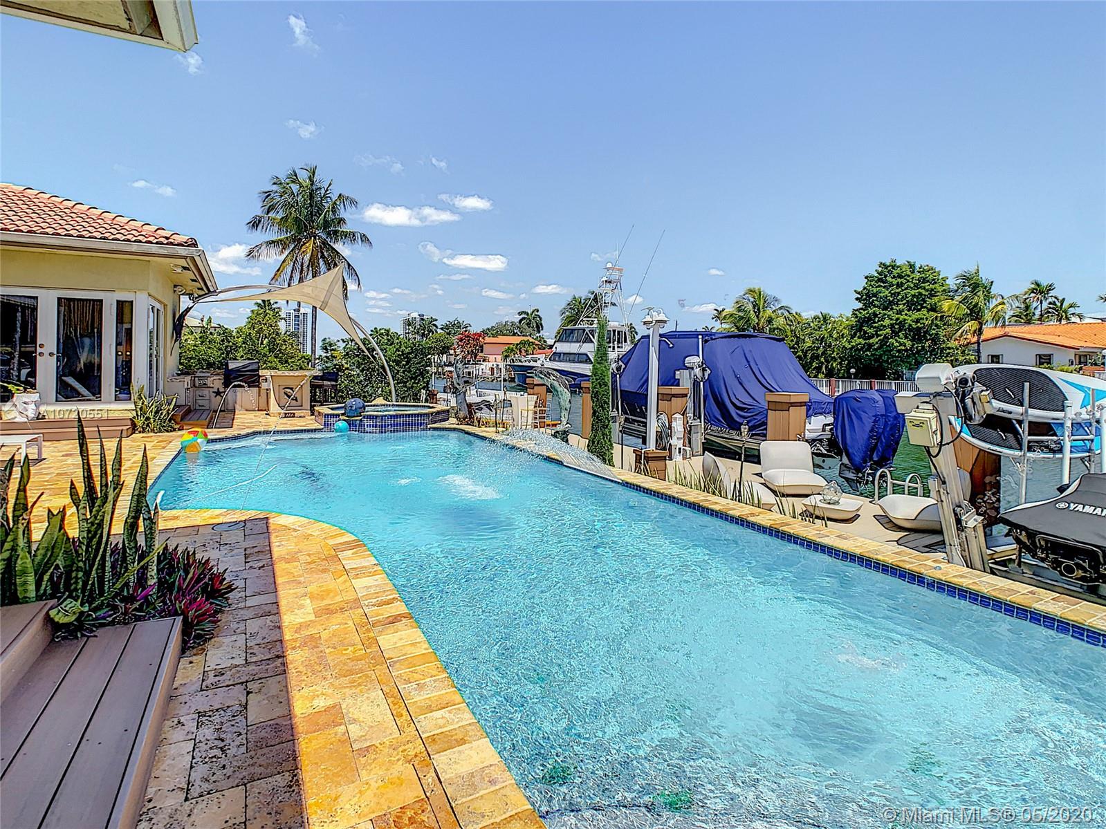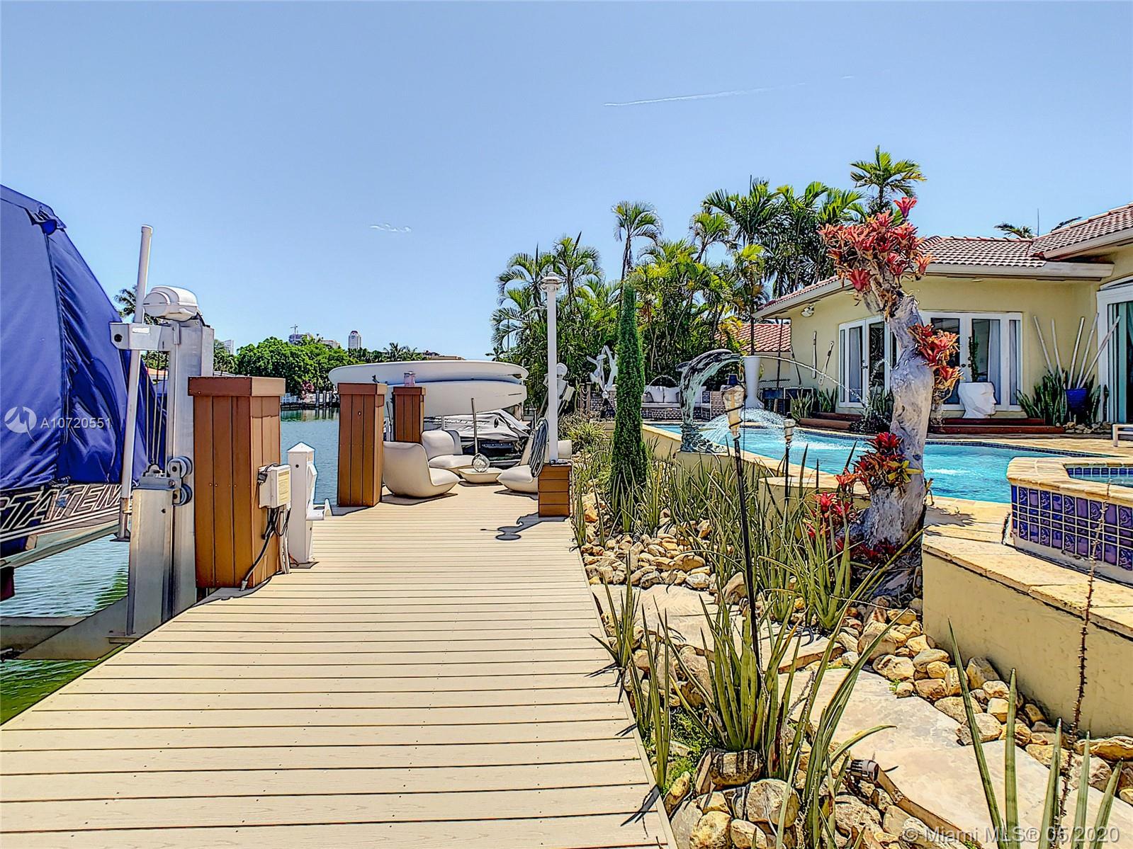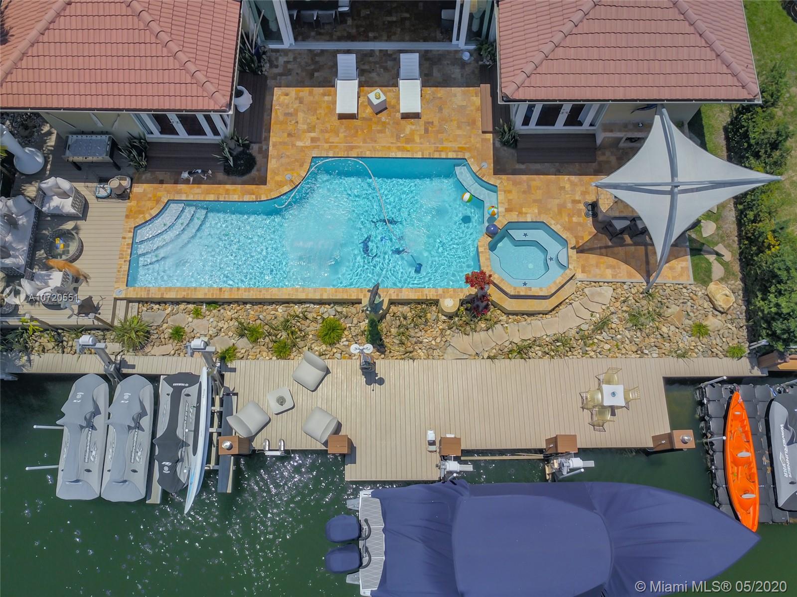 Gorgeous Custom build one Story Waterfront Home, marble and porcelain floors, Impact windows, Dream Italian design kitchen and a second kitchen at the family, 4 bedrooms, 3 bath with great Driveway at entrance. 80' water frontage with no fixes bridges. Automatic lift for a 30' boat and 2 others for jet sky .YACHTMANS DREAM IN GATED COMMUNITY WITH A RATED SCHOOLS Easy to show