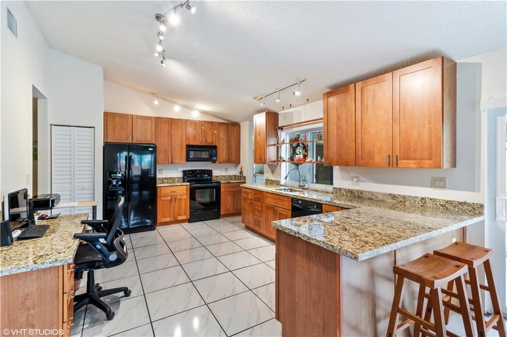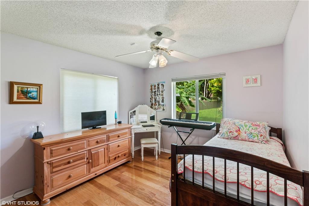 SHOWINGS ONLY FROM 10:00AM TO 5:30PM. Updated 3 Bedroom/ 2 Bath pool home situated in the well established, family oriented and highly desirable tree lined community of the Crossings. No carpeting in this home...Tile and real wood flooring throughout. Master and guest bathrooms have been completely renovated. Master bath en suite has his & hers own vanity/sink. Split floor plan. Recently renovated Kitchen has soft close wooden cabinets. Open concept kitchen (family room is currently being used as a eat in kitchen).Vaulted ceilings in kitchen & family room. Kitchen has a pass through window which is great for entertaining pool side. Fruit Trees. Impact windows throughout. Fairly new roof & A/C system. Irrigation system with new well(save on your water bill). Turn Key Home.