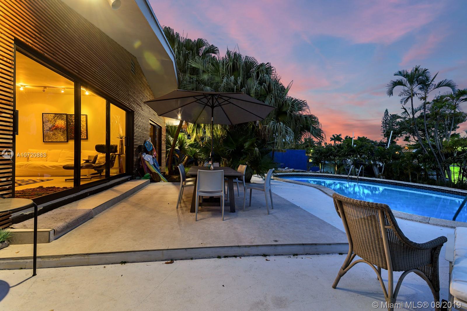 Don't look any further this is the best value for a waterfront house in Miami Beach. Tropical vibes in remodeled large 3213 sqft MiMo house. Lots of space in this 4 Bedrooms, 3 Baths with a double living room high ceilings, beautiful volumes and a true sensation of space throughout the house. This turnkey house a gorgeous remodeled new kitchen and bathrooms imported from Italy and a wood facade Very rare oversized lot with the biggest possible water frontage on the entre Island ( 80 ft) with a brand new boat lift and a dock and can fit several boats. Facing directly south, enjoy cocktails by the large pool over looking the water in a lush tropical garden. 2 car indoor garage ( no conversion) + 4 car driveway. Priced to sell