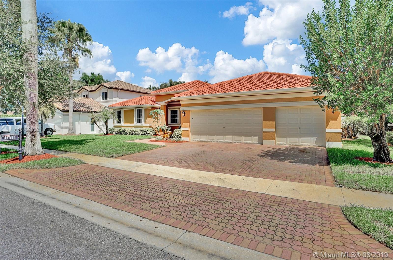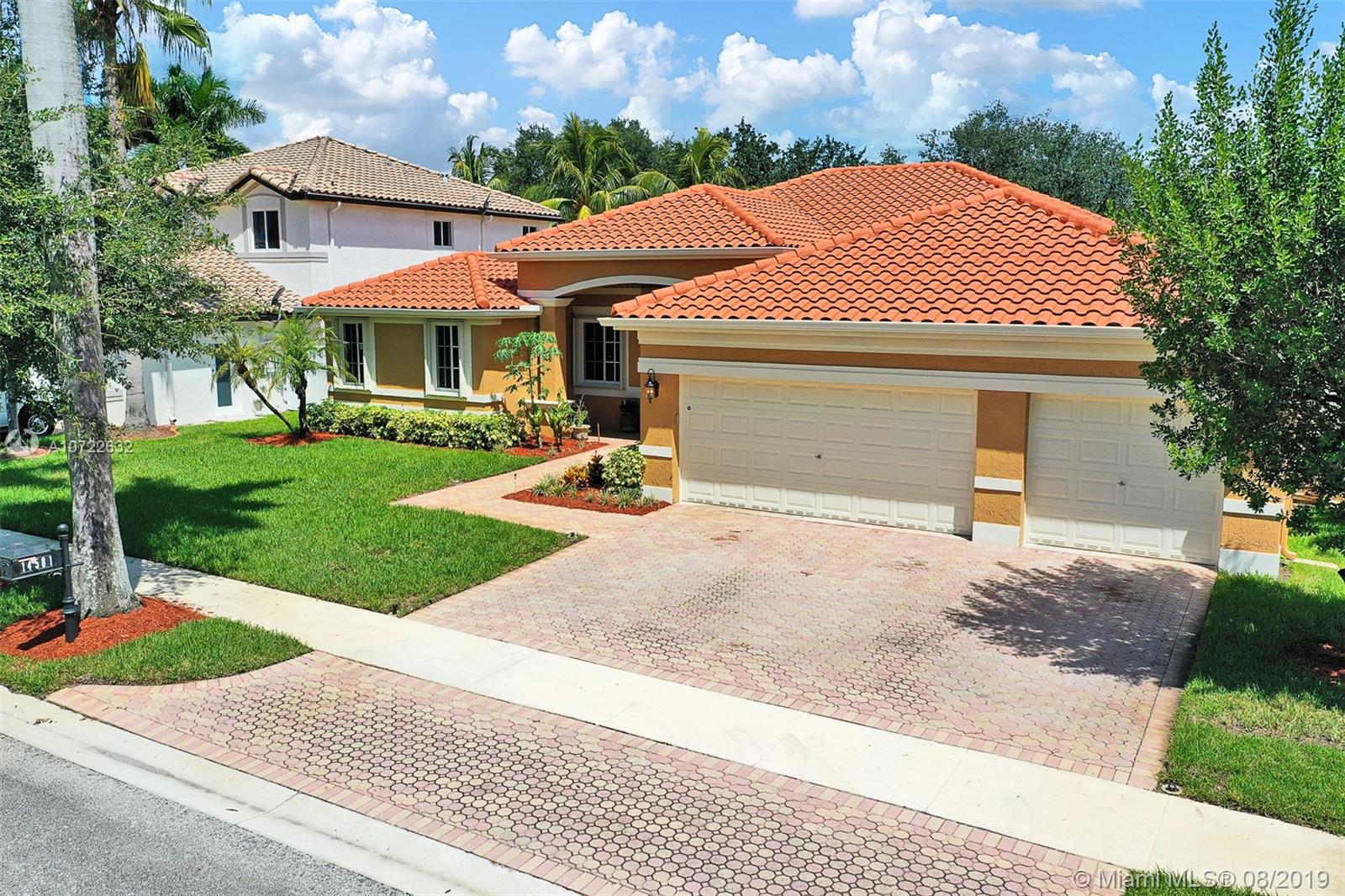 Stunning 4 bedrooms 3 baths + Office in the desirable GATED community Los Castillos, Windsor Palms. This home checks all the boxes & more with a 3-car garage, Volume ceilings, beautiful crown moldings, Custom drapery, Gourmet kitchen, granite counters, New Blk stainless steel appliances. Ideal triple-split bedroom plan, Huge Master suite with sitting area, 2 walk-in closets, spacious master bathroom with 2 double vanities, jacuzzi & shower. Large screened patio, fabulous outdoor space perfect for entertaining with room for a pool. Fully equipped with HURRICANE Accordion shutters. Rainsoft Water softener system. Community park & kids play area. Newer AC units. Low HOA fee. Great family neighborhood, zoned for A-rated schools and easy access to highways, shopping, and entertainment.