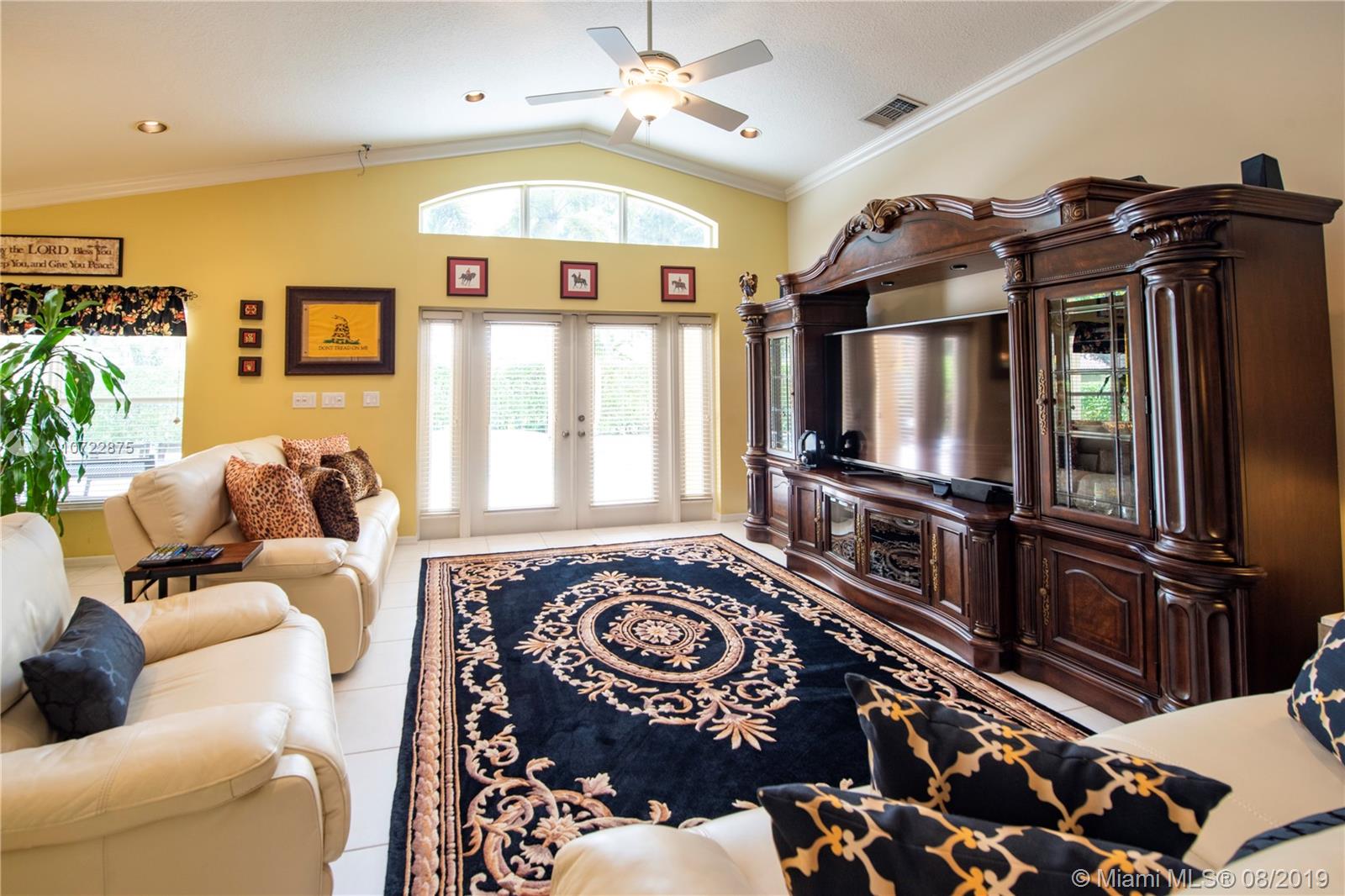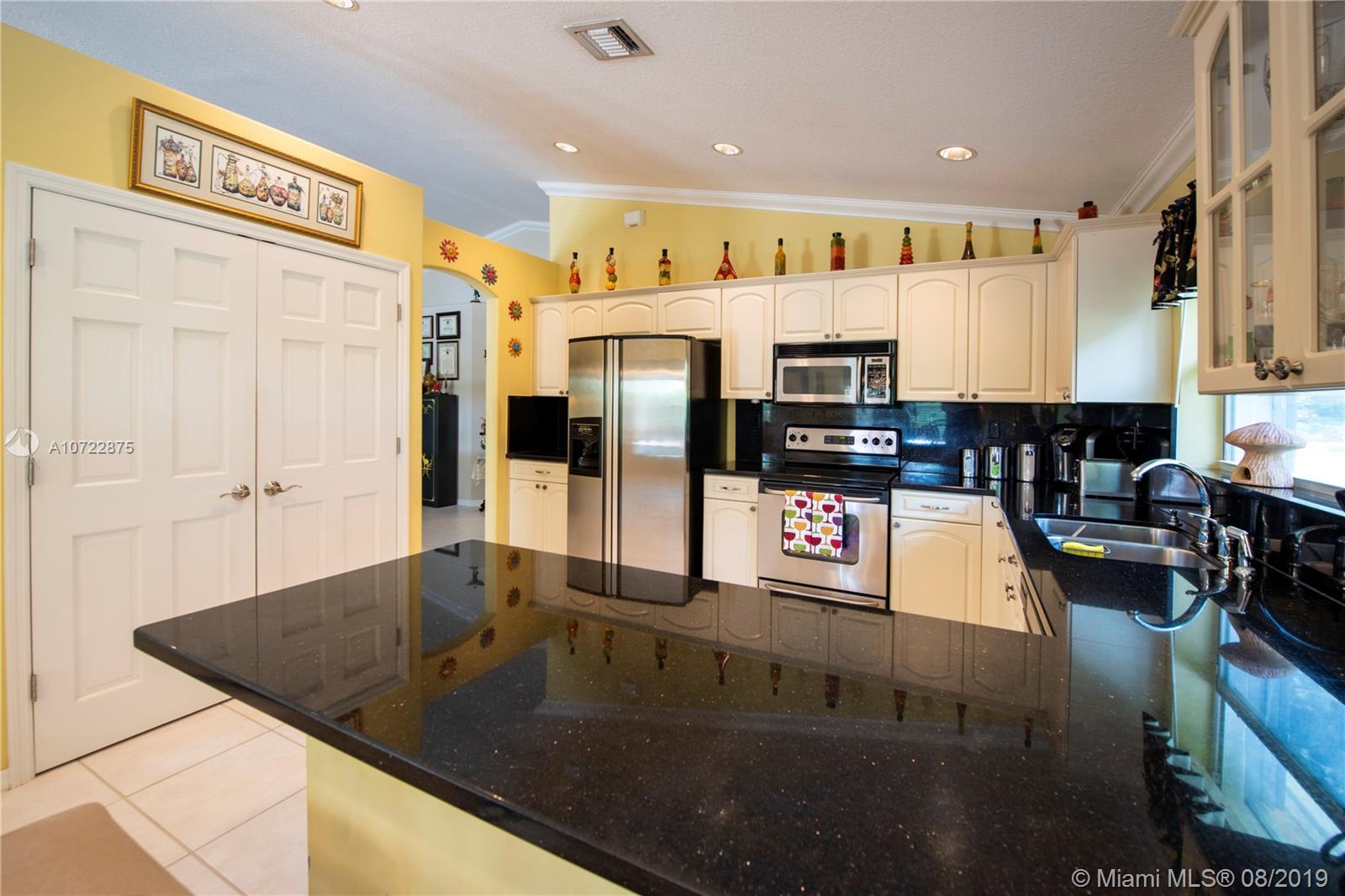 West Pembroke Pines single-story corner home with pool located in nice guard-gated community of Keystone Lake. Fully upgraded and in impeccable condition. Granite countertops, stainless steel appliances, double door pantry, knock down ceilings with crown molding, French doors, solid wood doors. Very private fenced-in backyard with exterior lighting, surround sound in social area and exterior patio, heated pool and spa. Accordion shutters throughout.