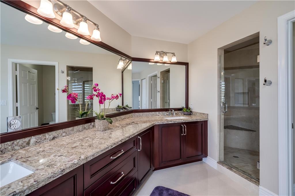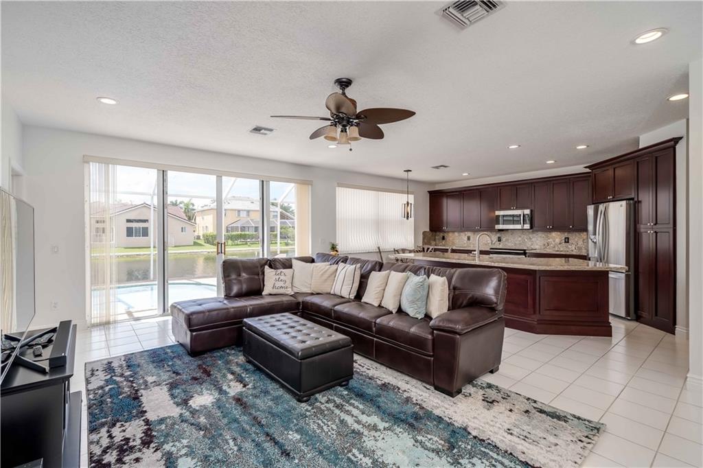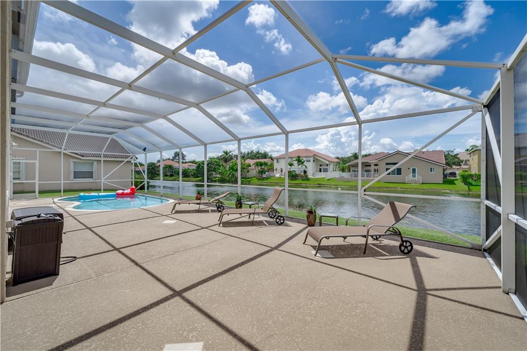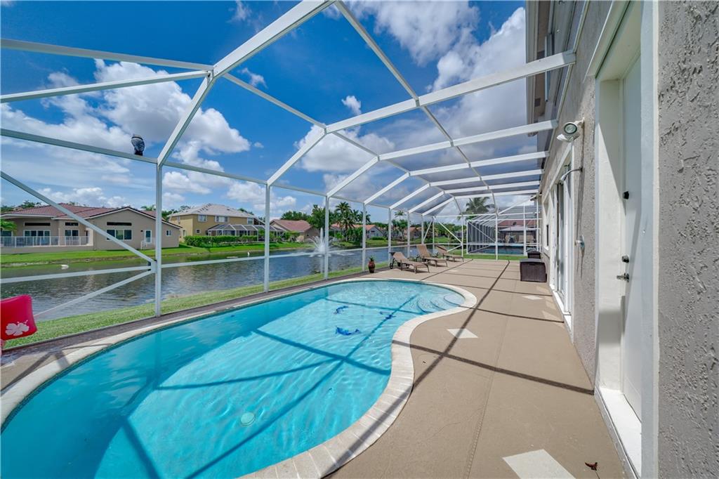 LISTED UNDER APPRAISED VALUE! Gorgeous 5/3 waterfront, pool home in highly sought after Yardley Estates, (Kensington Area) This 2-story freshly painted home features: 3 car garage, accordion hurricane shutters, BRAND NEW eat-in kitchen w/SS appliances, 1 bedroom on 1st Floor w/full bath (Murphy bed included),volume ceilings, family room, tile throughout 1st floor, walk in closet in master, BRAND NEW master bath boasts His/hers sinks with separate shower & Roman tub,Brand new Stunning Second Bathroom upstairs, and screened-in pool/patio with lake views. LOW HOA FEE! Zoned for top rated schools (1 block to elementary/high schools) & North Community Park (across street) with tennis, basketball, volleyball, playground & walking trail. TOP RATED SCHOOLS / STONEMAN DOUGLAS H.S.