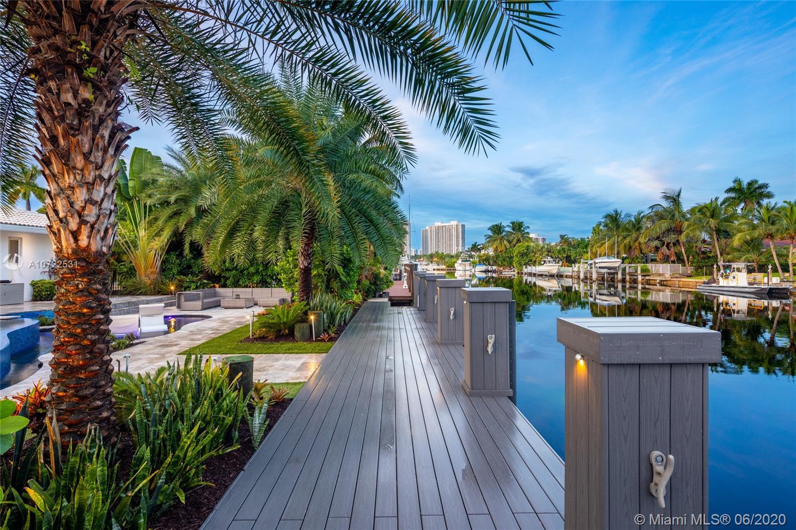 Waterfront luxury masterpiece tucked away in the prestigious Golden Isles community. Fully renovated & turn key this stunning residence features 4 oversized bedrooms and 5 bathrooms, 4,000 Sq Ft of living space. A tranquil entry covered in bougainvillea welcomes you to a sleek modern vibrant place to call home. Open concept floor plan. White 32' porcelain tile throughout, custom doors, closets, LED lighting. Snaidero-Pininfarina Kitchen includes Subzero refrigerator & wine cooler, Quartz countertops, Wolf oven & range. 14' high ceilings, impact windows. Resort style backyard perfect for entertaining, custom designed infinity edge salt water pool w/ built in swim up tiki hut including summer kitchen & bar overlooking 85' of water frontage.Easy access to intracoastal,a plus for avid boaters!