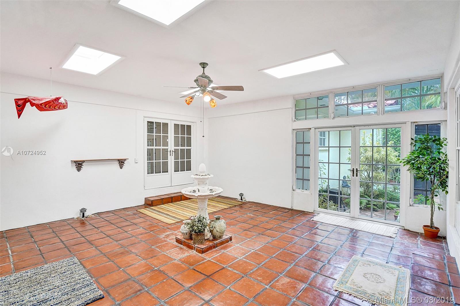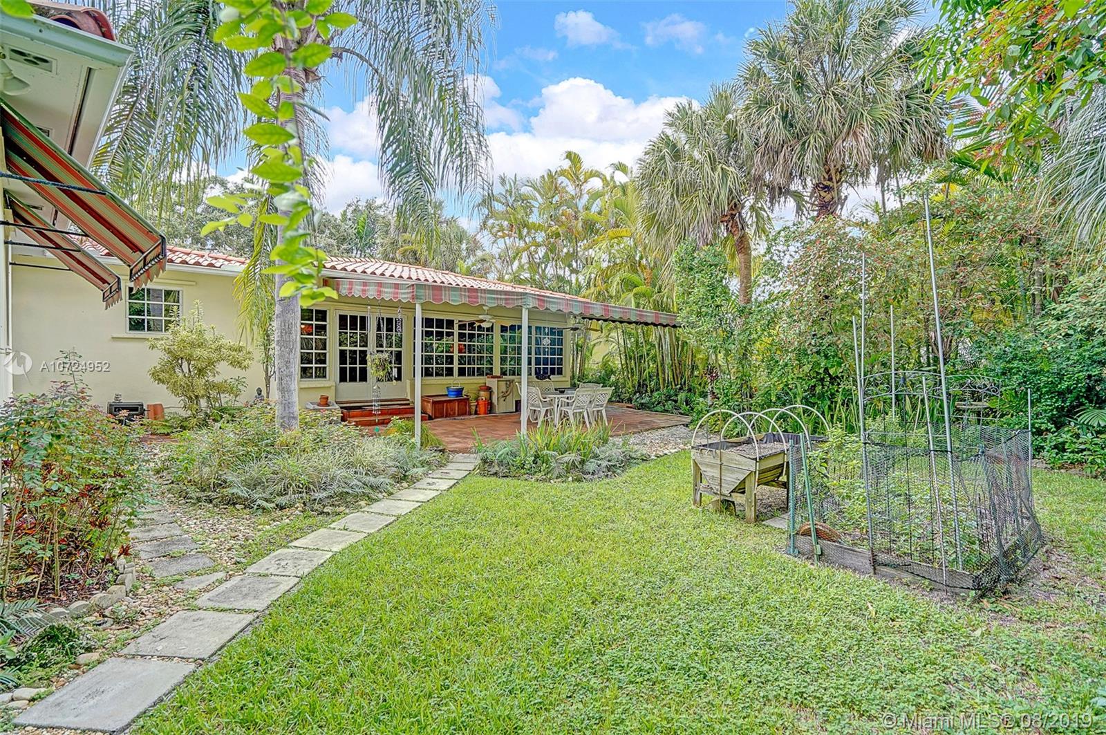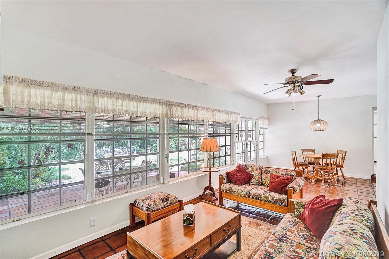 Beautiful well maintained home located in the desirable East side area of the Shores. This spacious home has so much potential! Features include 3 bedrooms with walk in closets (master has 2), 4 Full bathrooms, gleaming hardwood floors, polished Mexican tile, fully enclosed Atrium with a relaxing water fountain & 4 skylights which allow in nice natural lighting, fully covered tiled back patio, lush tropical oasis surrounds the property creating privacy, large fenced yard with several edible plants & a large delicious mango tree. Walking distance to Biscayne Bay and a stone throw away from one of the best golf courses in Dade county, Miami Shores Country Club. This one is a must see!