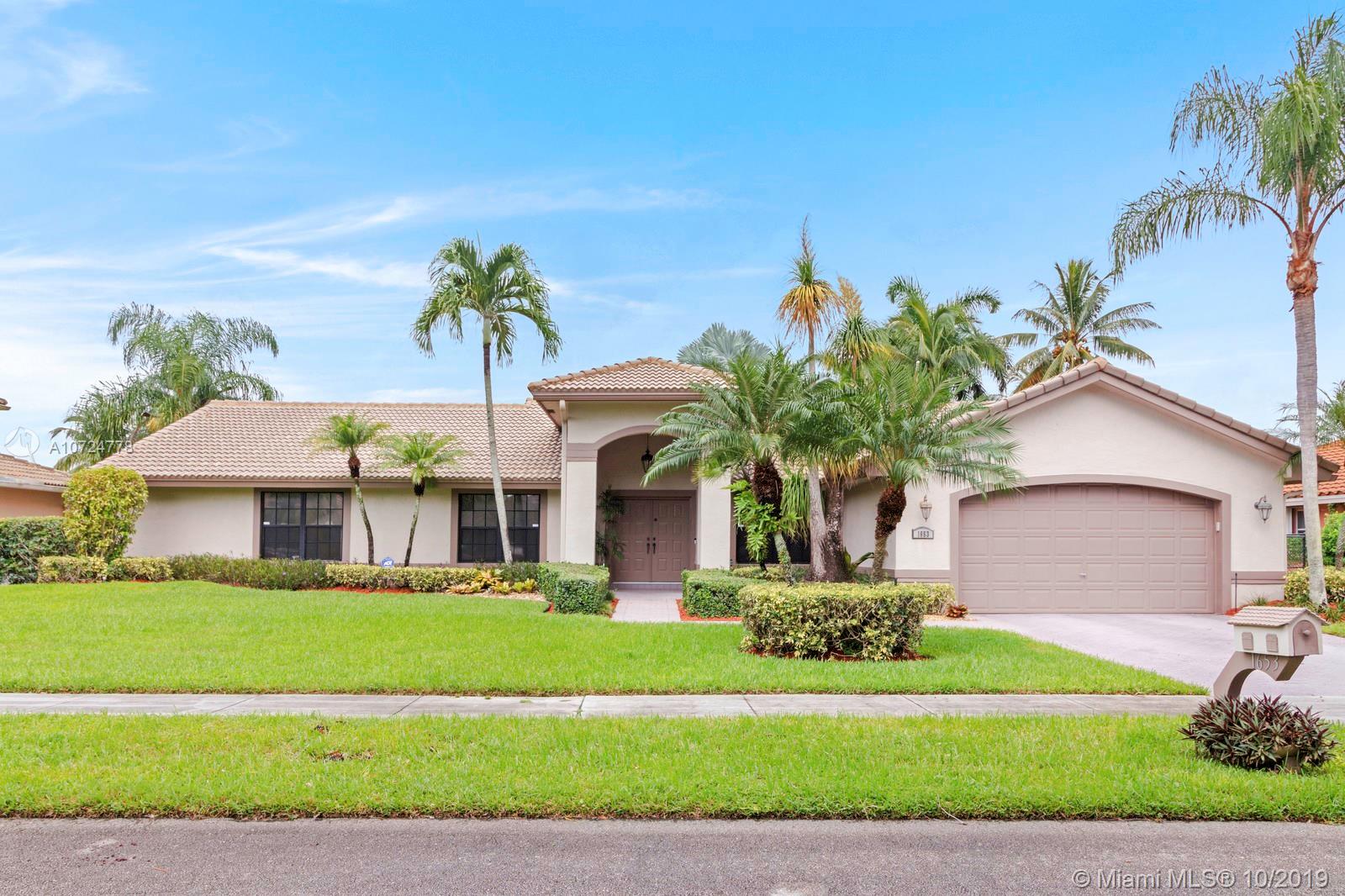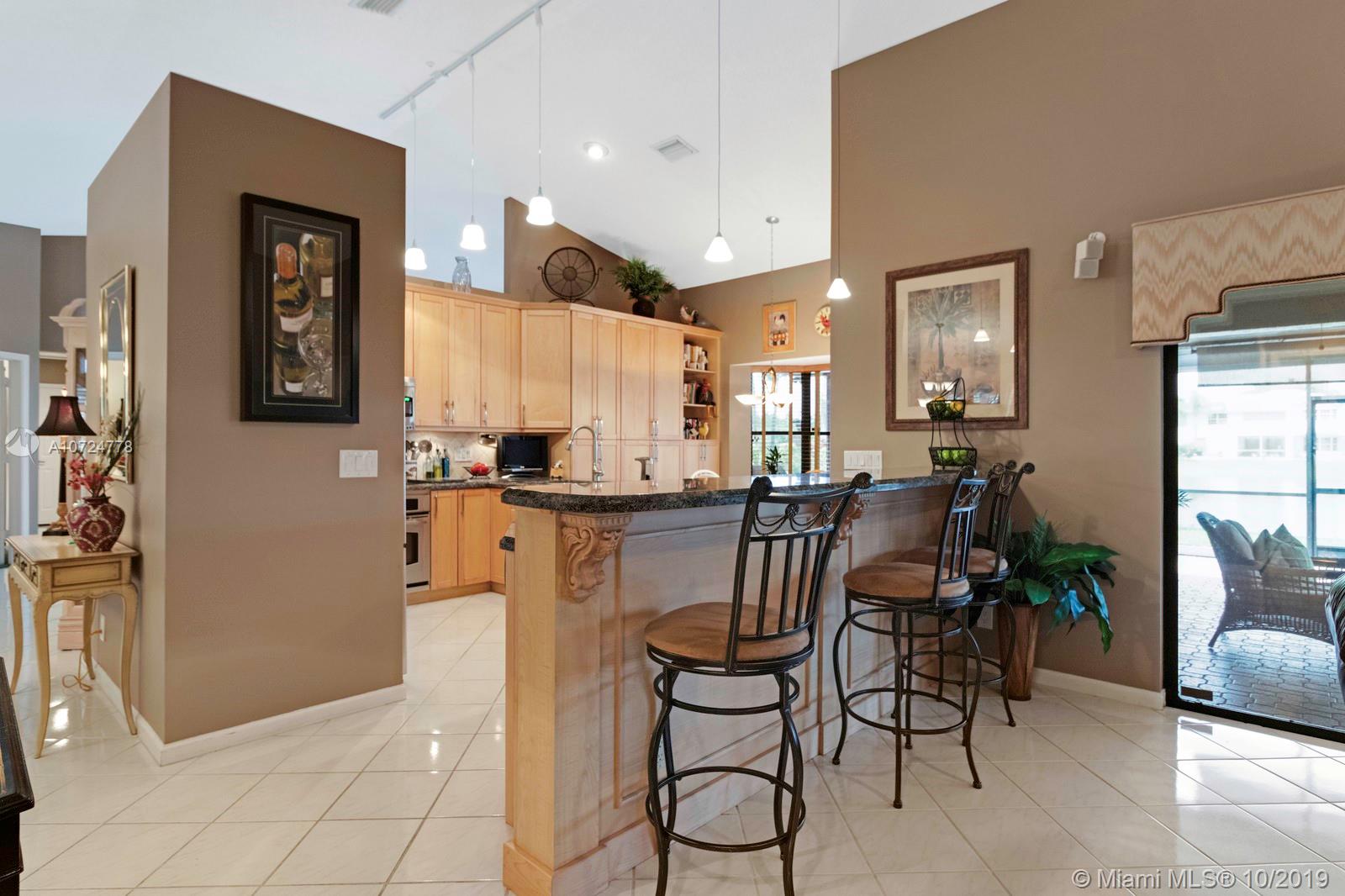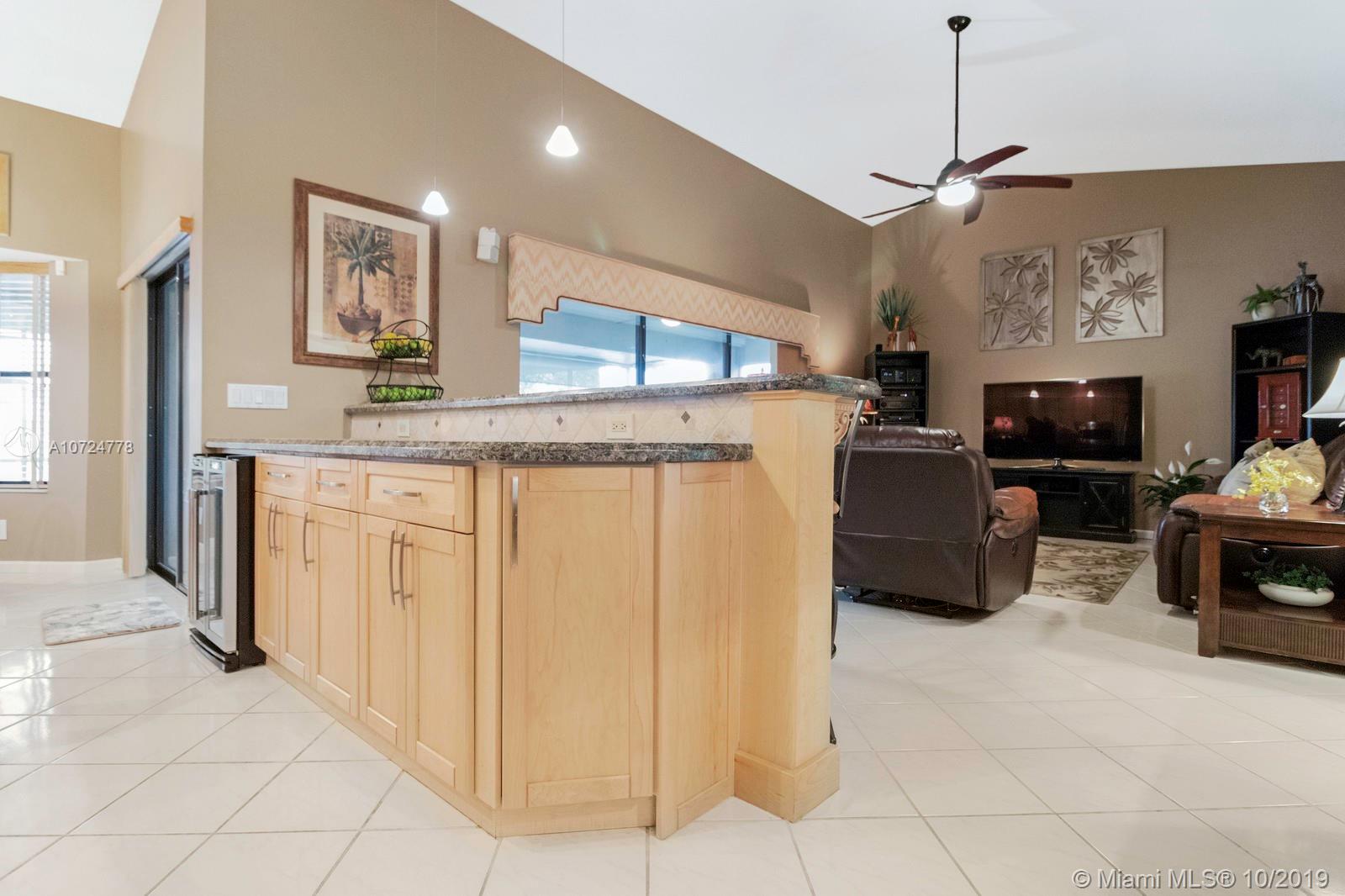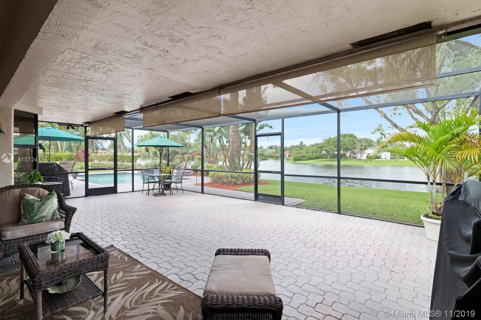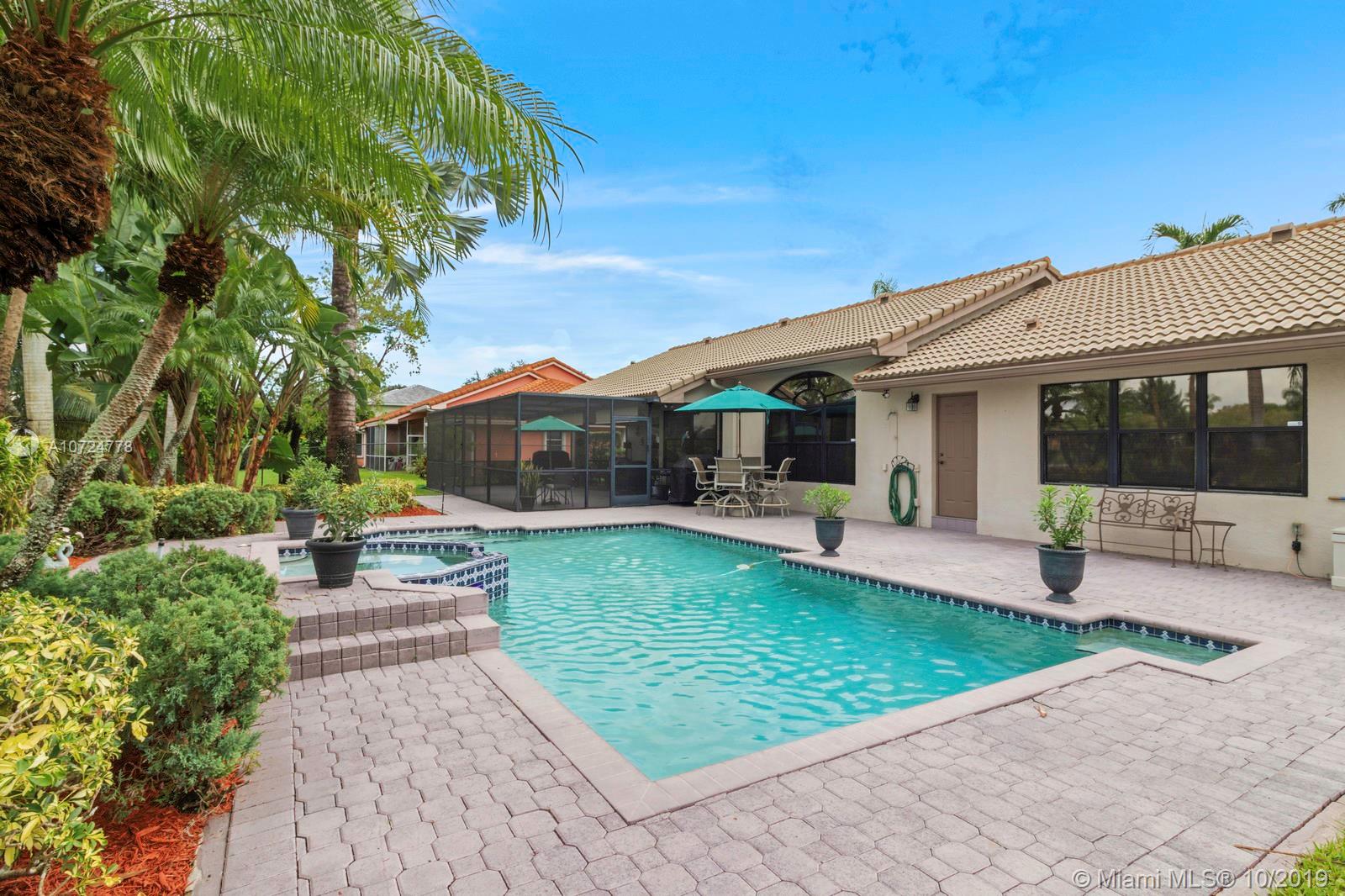 DON'T MISS THE INTERACTIVE 3D TOUR!!! New Roof installed in 2013. Incredible well cared for home with absolutely stunning back yard, complete with extended patio coverage, and pool and spa that is perfect for entertaining. The sun setting over the lake is one of the best backyard views in Broward County. Bedrooms have excellent built in closets. Kitchen has stainless steel appliances, granite countertops, a beautiful wine rack, and built in wine cooler to go with the incredible amount of cabinets complete with under and over cabinet lighting. Laundry room comes with extra freezer. Garage comes with great storage and extra refrigerator. Excellent (A-Graded) schools.