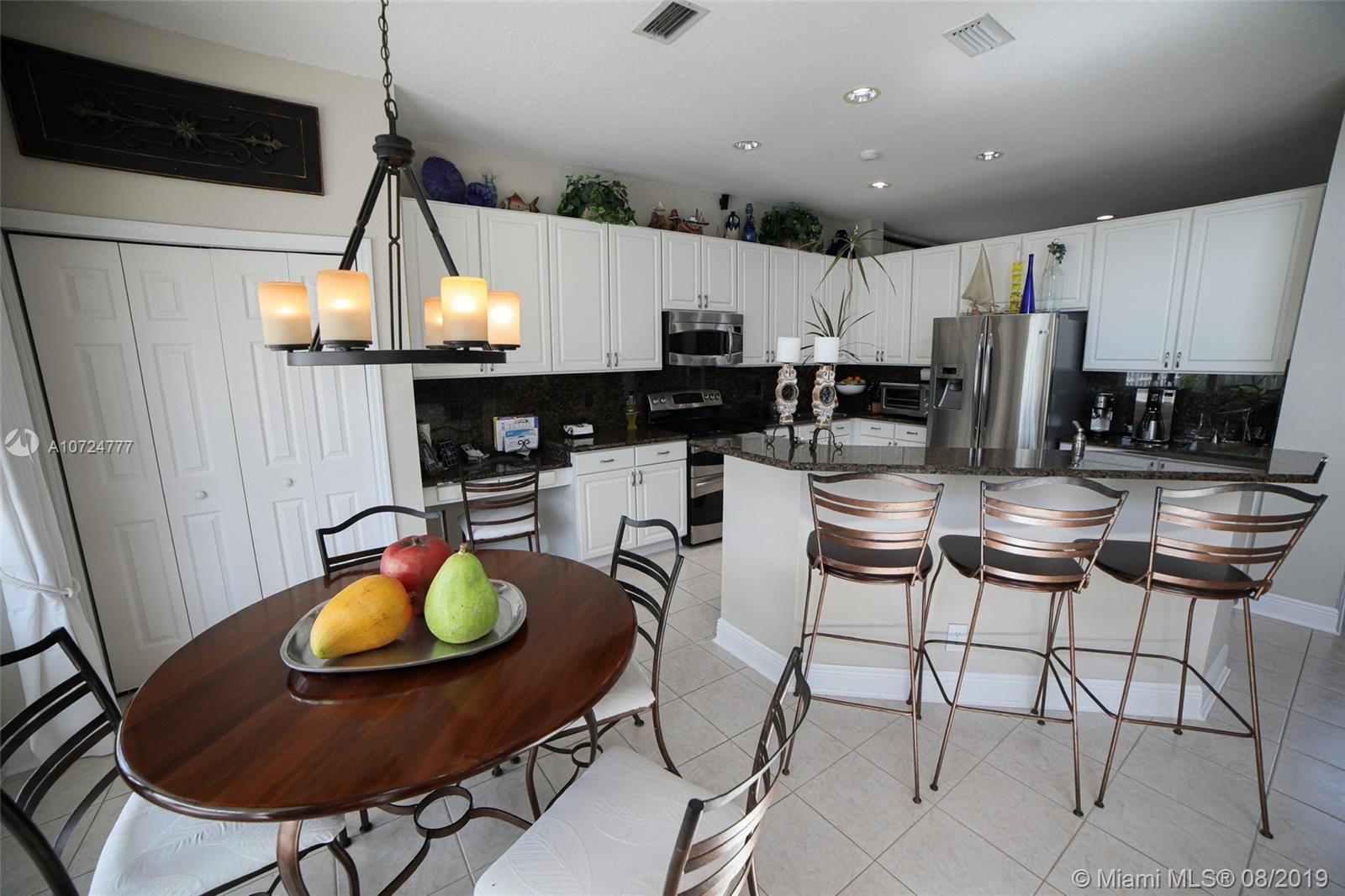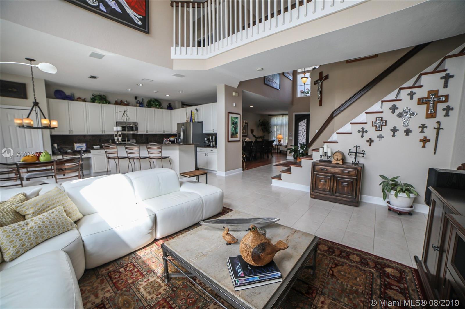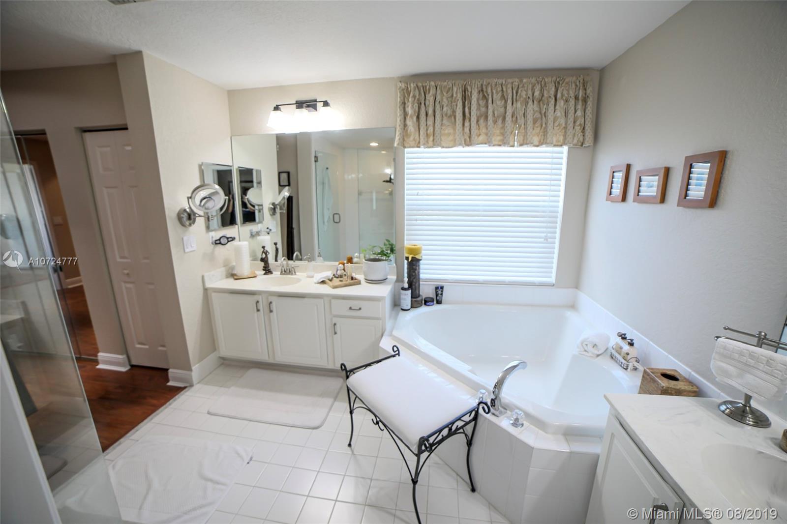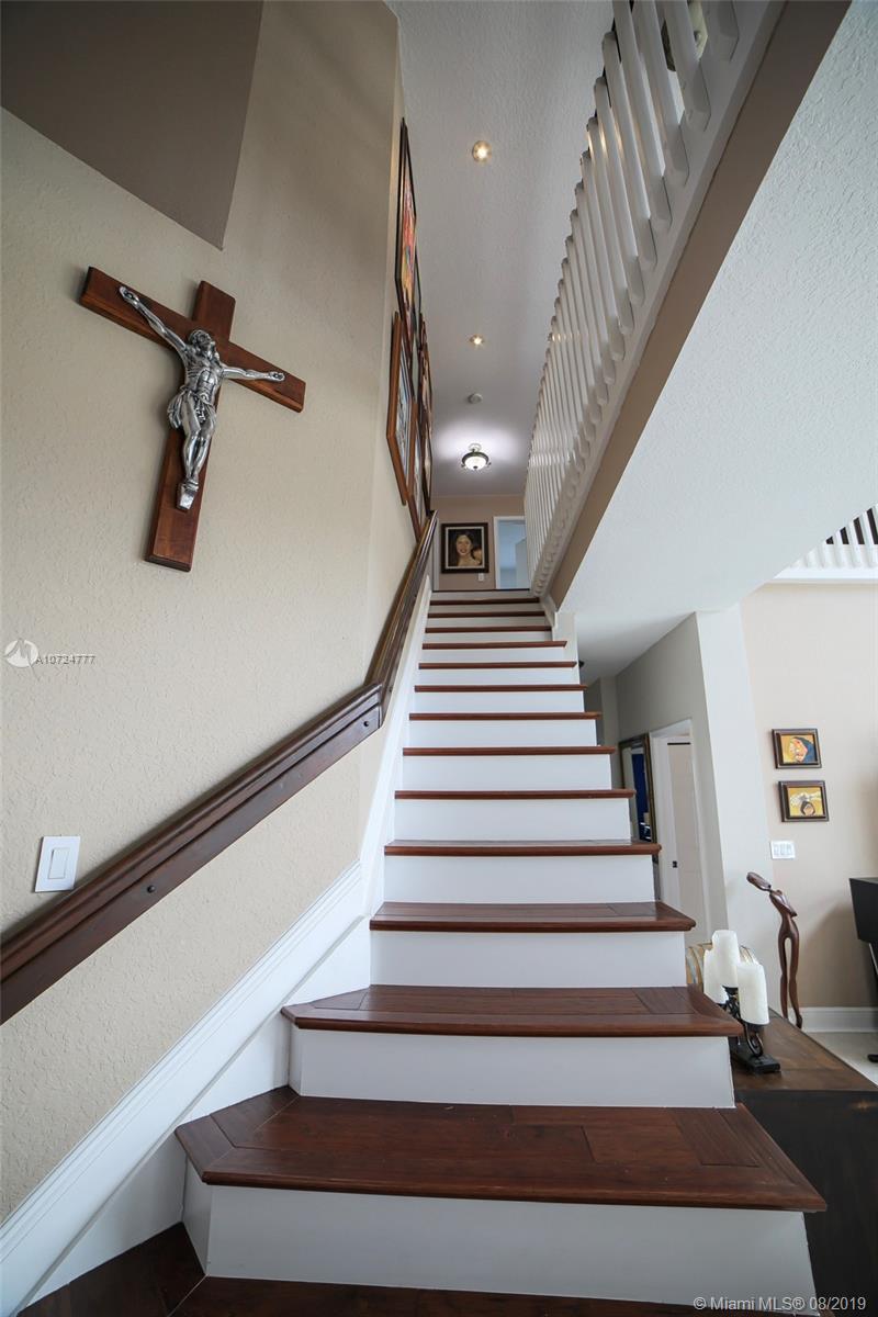 Gorgeous home in a desirable gated community Pembroke Shores, 4bedrooms, 3full baths, 3car garage. Bright, airy and open floor plan with natural lighting and great flow. High ceilings. Tastefully updated kitchen that features granite countertops, stainless steel appliances, and modern style wood cabinets. Ample tiled living areas with a great Living Room, and a formal Dining Room area. Wood Stairs to the second floor redone with an open design. Upstairs has laminated wood floors. Good size Master Bedroom with a just beautifully renovated Master Bathroom. Split bedroom design. Other bathrooms also renovated. New hurricane windows with thermal protection. Amazing backyard with white vinyl fence, pool, paved patio, large landscape, built-in outdoor grill, outdoor speaker. Move-in ready!!