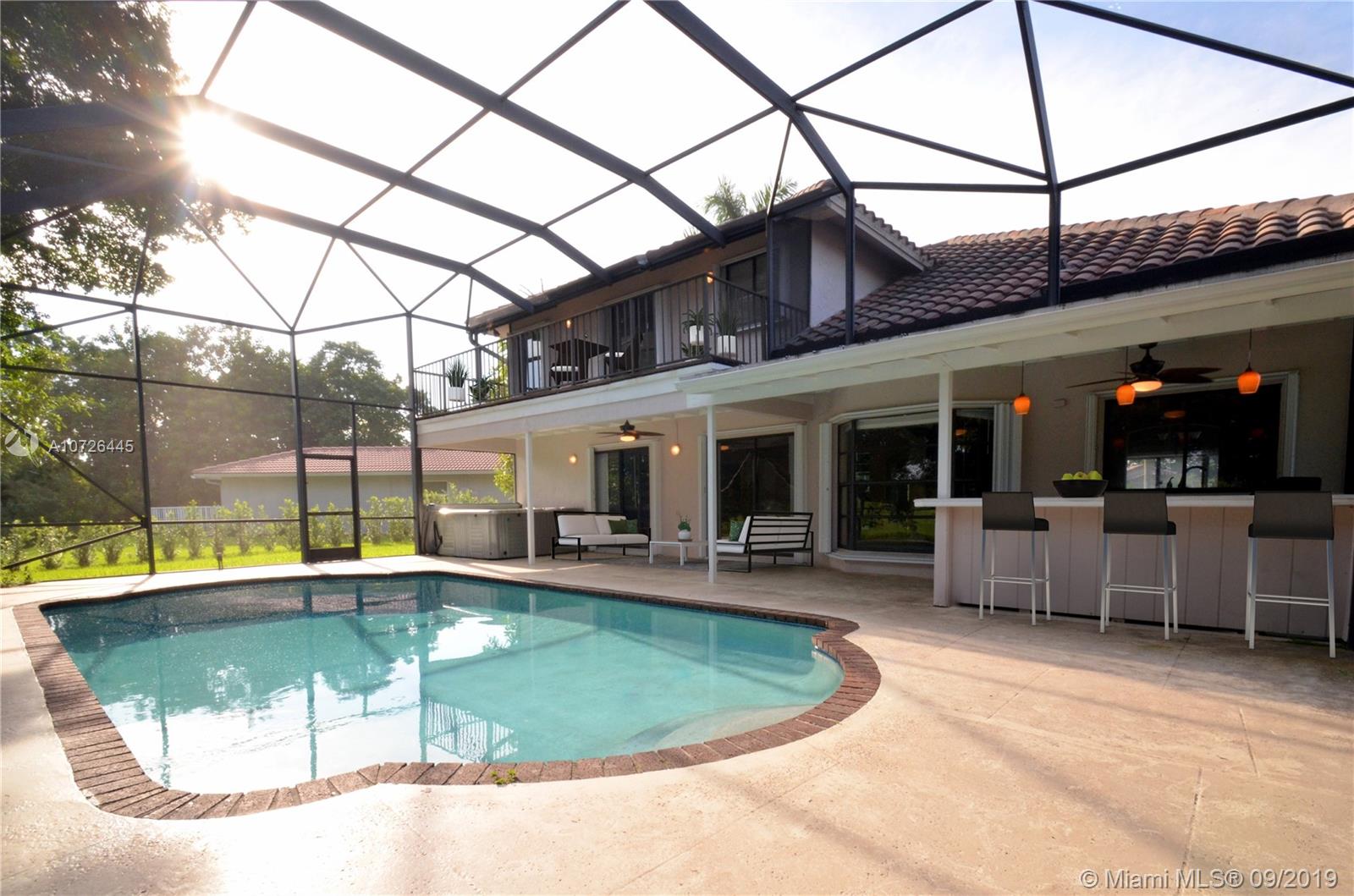 Contemporary 2 story 3 bed 2.5 bath home on child friendly cul-de-sac, expansive golf/water views,circular driveway. Spacious 2 car garage. Boca Greens is a golf community of nearly 600 homes with manned gate. Golf membership NOT required. Play the course on pay for play basis. Open floor plan for relaxed living. Pool, spa. 2 story screened enclosure, 2nd fl balcony. Gourmet kitchen, stainless steel appliances (covered by warranty), granite counter tops, formal dining/ living room, volume ceiling, large family room, wet bar. 2 zone AC,both systems new 2019. Hurricane shutters. All bedrooms on second floor. Nearby South County park where you can kayak, jet ski and attend concerts. Minutes from shopping, parks, library and Chabad. A-rated schools. Low HOA includes internet and premium cable