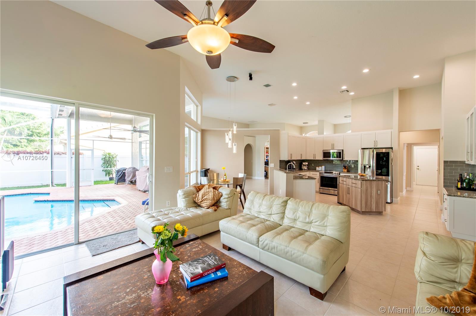Spacious Monterey model, featuring an open 3-way split floor plan, 4 beds + den, 3 baths. Contemporary décor: Italian ceramic tile in common areas, new COREtec waterproof plank in beds, and 5 ¼" baseboards throughout. Neutral wall colors, modern ceiling fans, cordless blinds, exclusively LED lighting. Remodeled kitchen w granite counters, white shaker cabinets, glass backsplash, and new, high-end SS appliances. Upgraded bathrooms. Upgraded laundry room with extra cabinets, Samsung black stainless washer & dryer, stainless steel utility sink. 2 new A/C units. Enclosed pool with new 72" high capacity SS ceiling fans. 2 car garage. Exclusive gated Pembroke Falls community w/ heated pools, sports courts, clubhouse, and gym. Close to shopping and highways.--