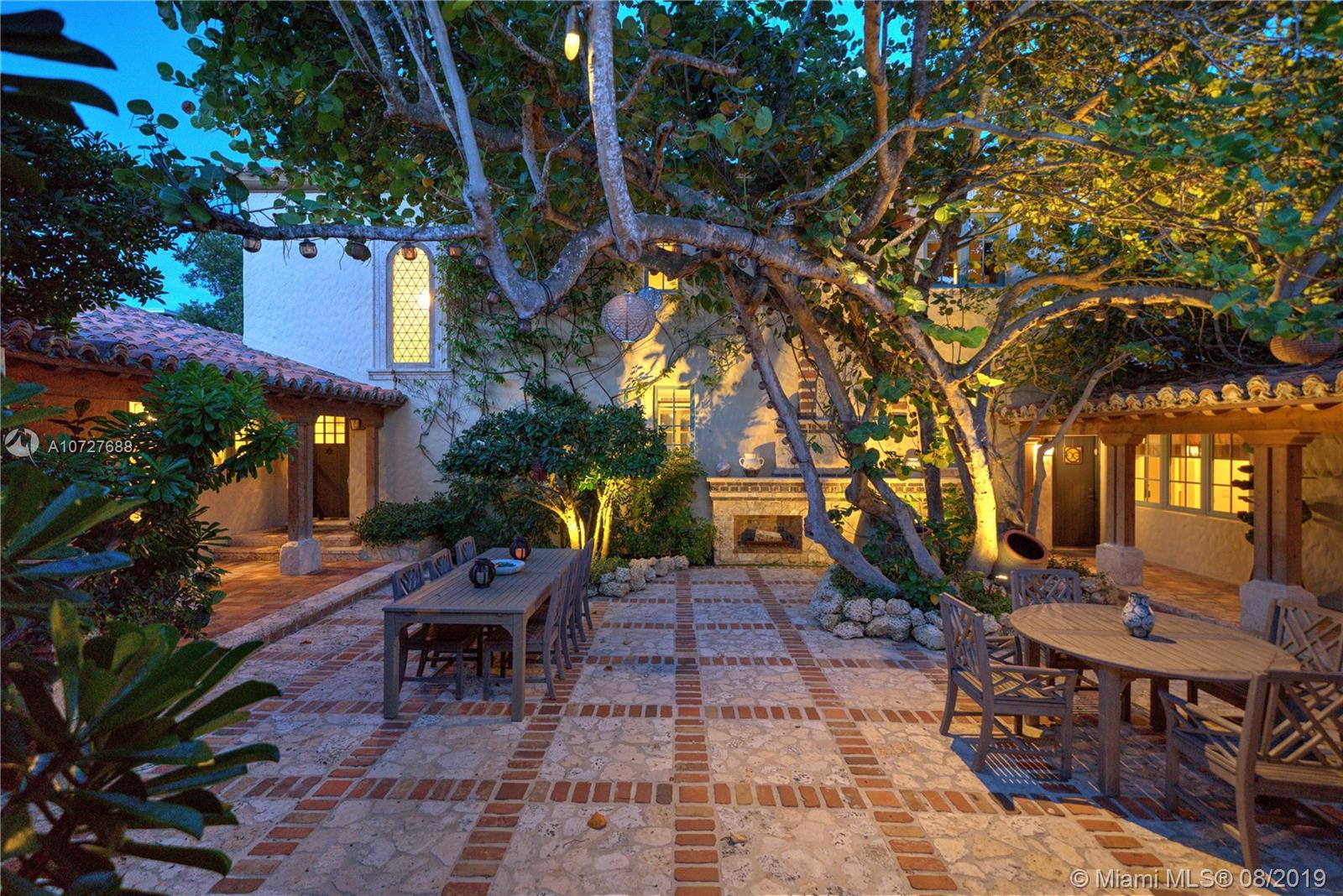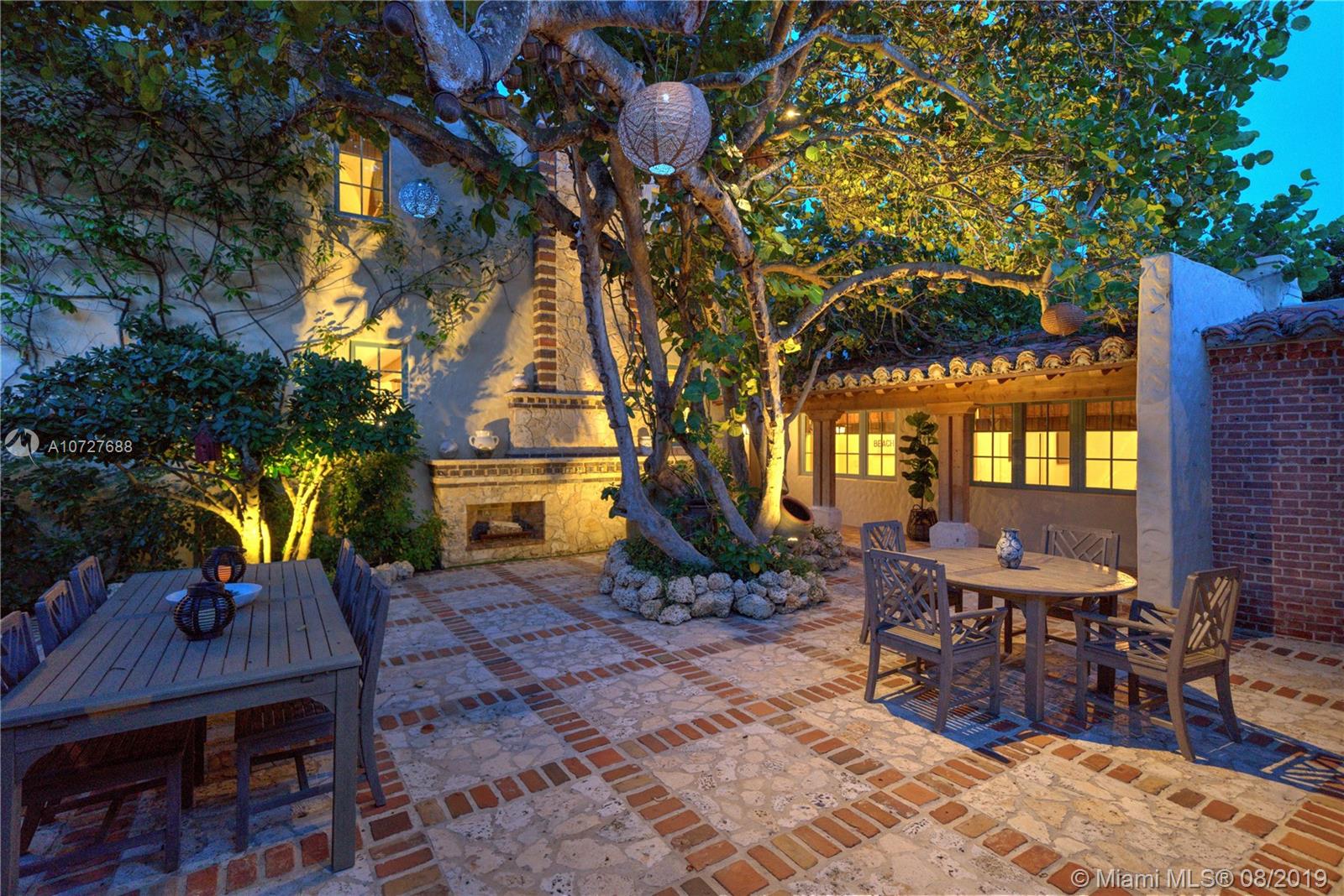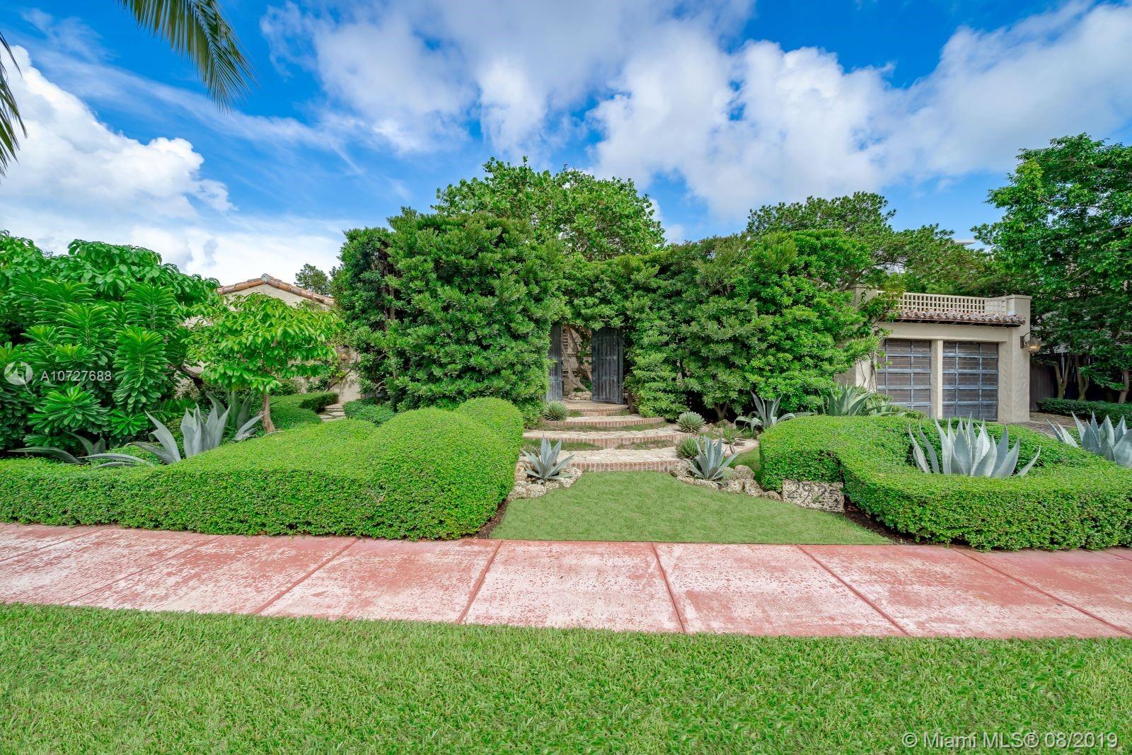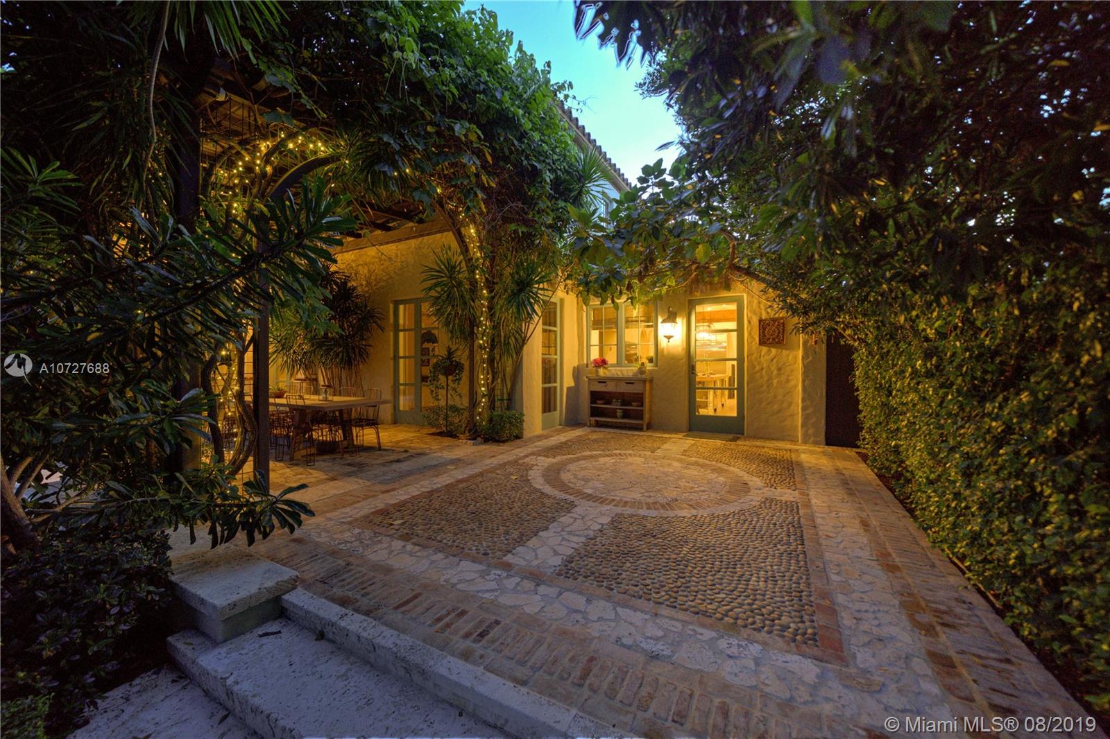 Designed with the laid-back luxury of California wine country in mind, this home is a study in a quiet elegance. Oversized lot is lusciously landscaped. Massive wood doors lead to a courtyard wonderland. Exquisite back patios, and terraced gardens extend the living area to the great outdoors. This is no ordinary setting! Inside you will find an extraordinary depth of detail. Gutted to the studs & restored to perfection. Italian wood plank & stone floors. The kitchen with 2 sinks & huge island/eat-in area opens to the courtyard & the formal dining rm. Master has His/Hers closets, sitting area and fireplace. 62 ft dock, newly capped seawall, 2-car garage & proper laundry room. Highest natural elevation on Miami Beach. Walk to the Ocean, restaurants, clubs, hotels, museums, the ballet etc.