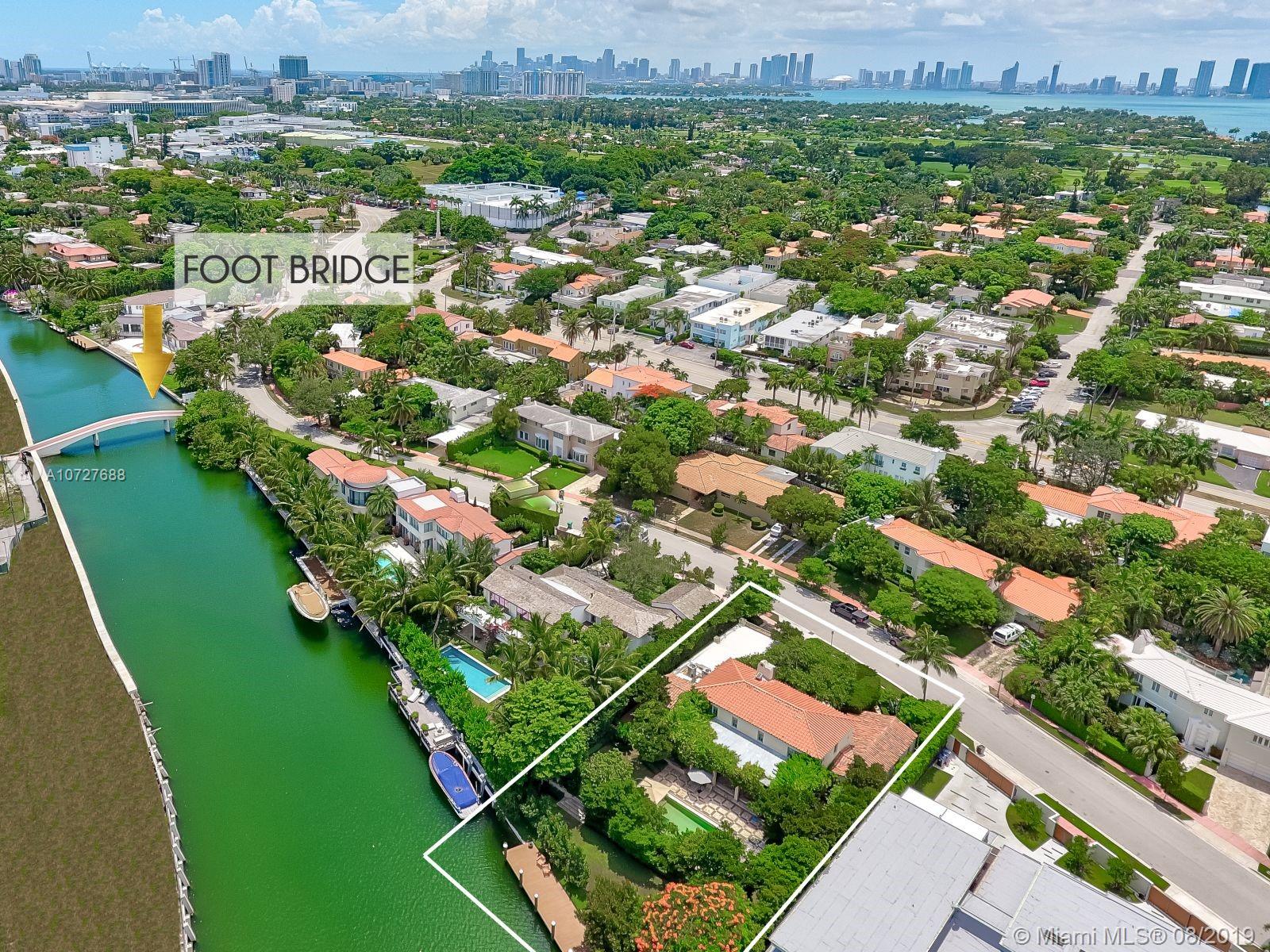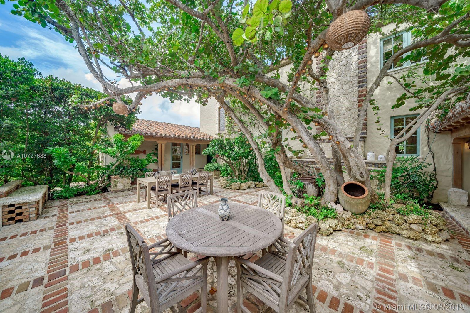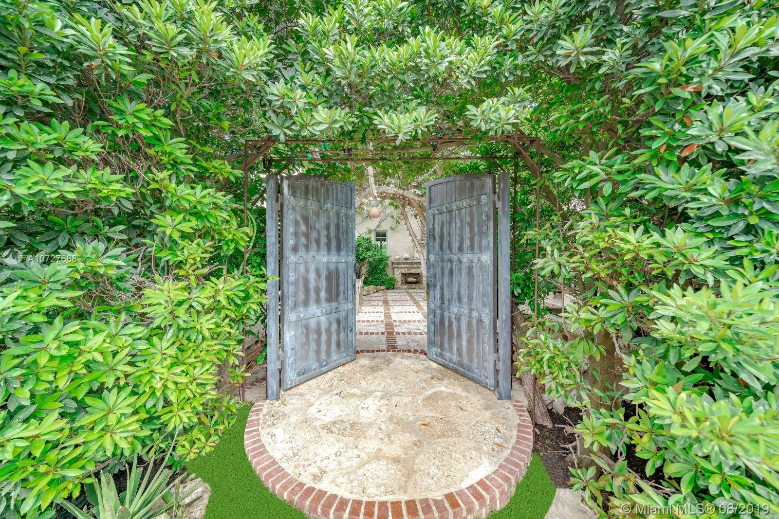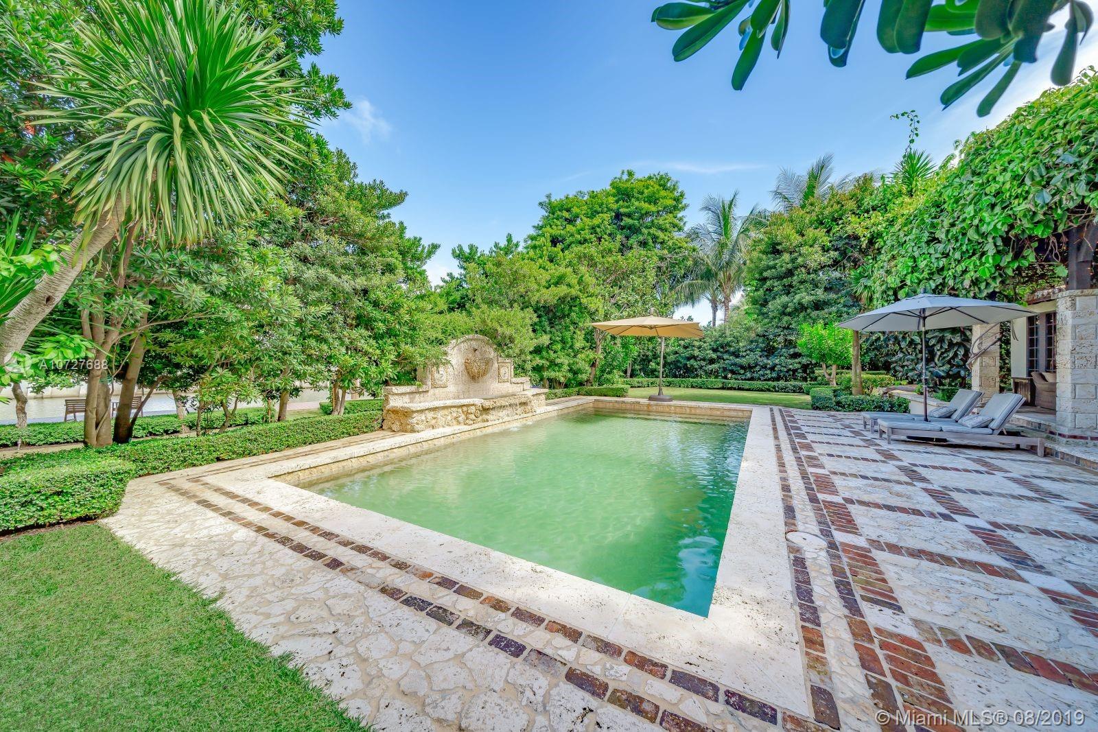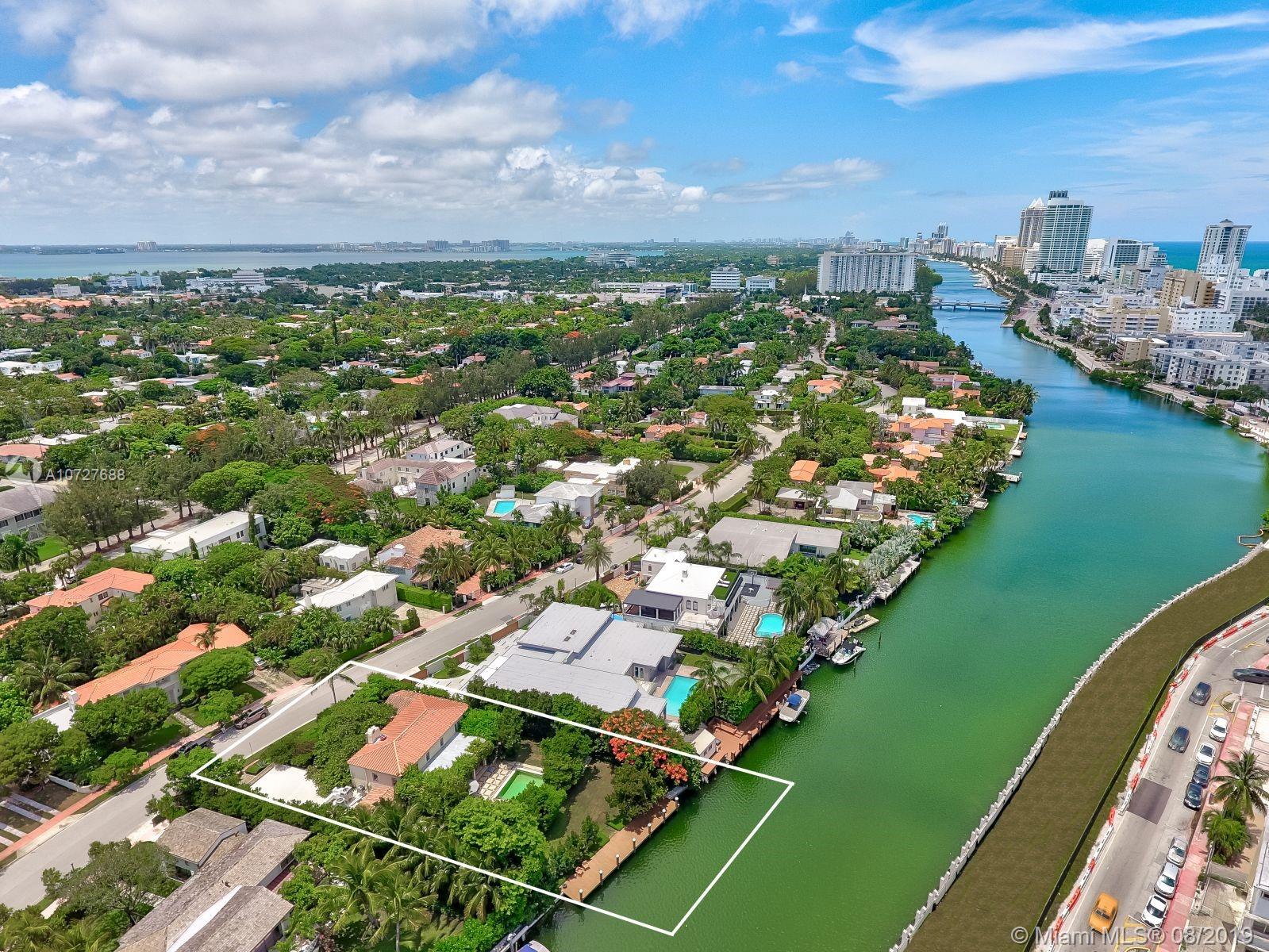 Designed with the laid-back luxury of California wine country in mind, this home is a study in a quiet elegance. Oversized lot is lusciously landscaped. Massive wood doors lead to a courtyard wonderland. Exquisite back patios, and terraced gardens extend the living area to the great outdoors. This is no ordinary setting! Inside you will find an extraordinary depth of detail. Gutted to the studs & restored to perfection. Italian wood plank & stone floors. The kitchen with 2 sinks & huge island/eat-in area opens to the courtyard & the formal dining rm. Master has His/Hers closets, sitting area and fireplace. 62 ft dock, newly capped seawall, 2-car garage & proper laundry room. Highest natural elevation on Miami Beach. Walk to the Ocean, restaurants, clubs, hotels, museums, the ballet etc.
