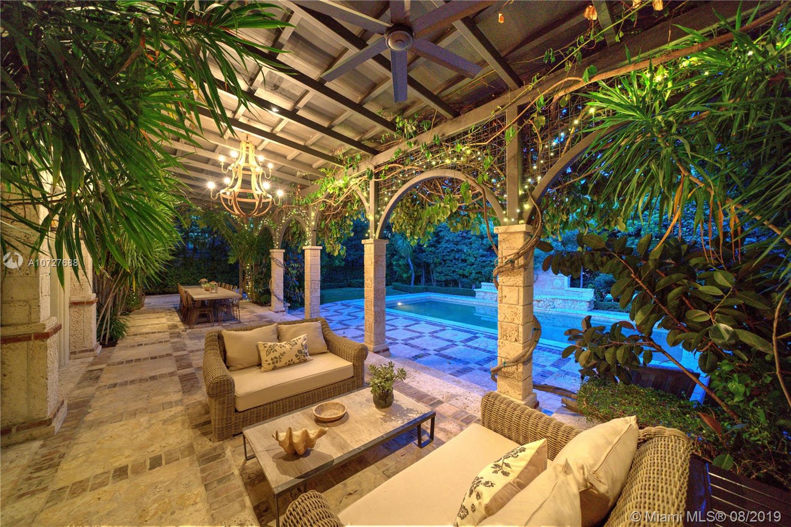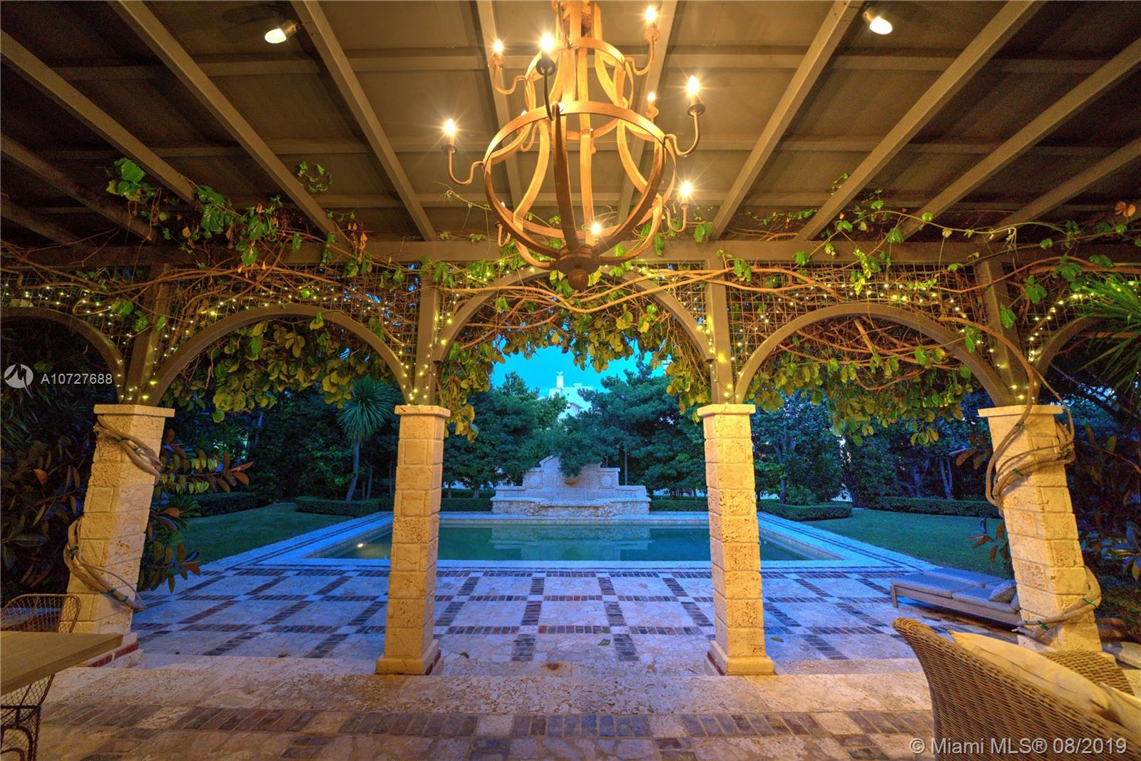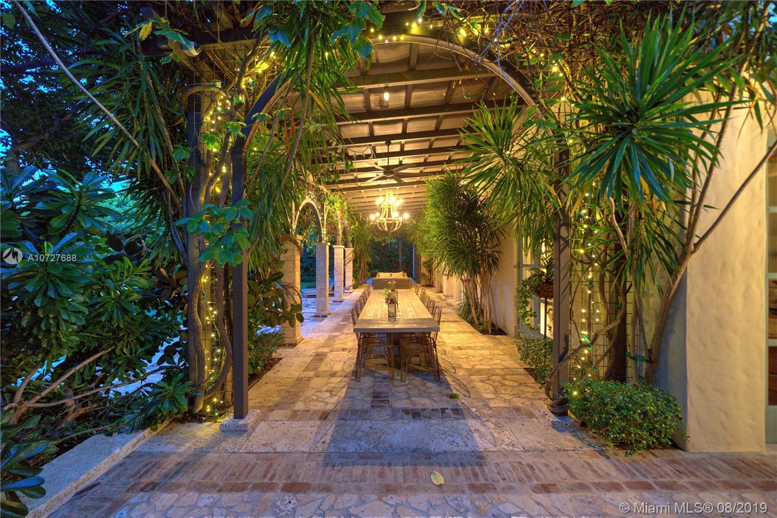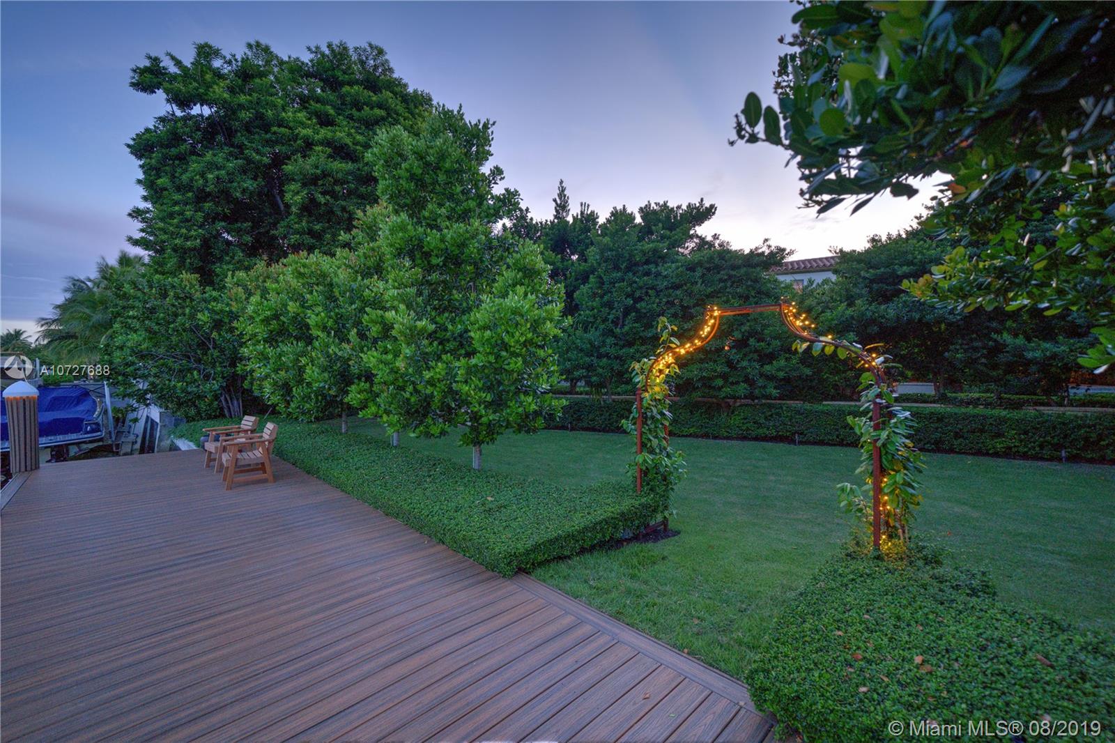 Designed with the laid-back luxury of California wine country in mind, this home is a study in a quiet elegance. Oversized lot is lusciously landscaped. Massive wood doors lead to a courtyard wonderland. Exquisite back patios, and terraced gardens extend the living area to the great outdoors. This is no ordinary setting! Inside you will find an extraordinary depth of detail. Gutted to the studs & restored to perfection. Italian wood plank & stone floors. The kitchen with 2 sinks & huge island/eat-in area opens to the courtyard & the formal dining rm. Master has His/Hers closets, sitting area and fireplace. 62 ft dock, newly capped seawall, 2-car garage & proper laundry room. Highest natural elevation on Miami Beach. Walk to the Ocean, restaurants, clubs, hotels, museums, the ballet etc.