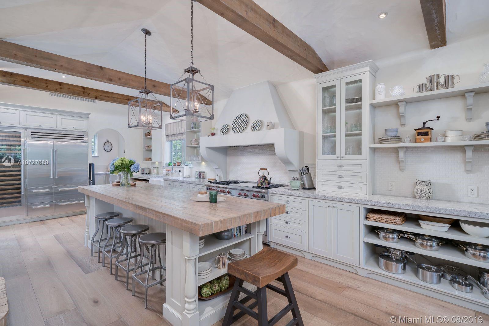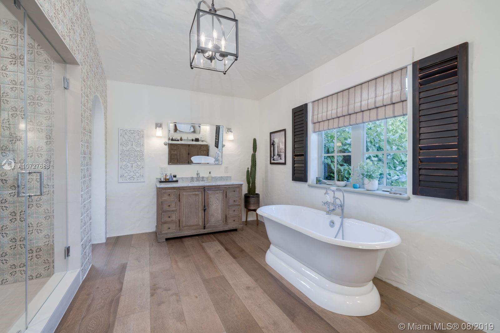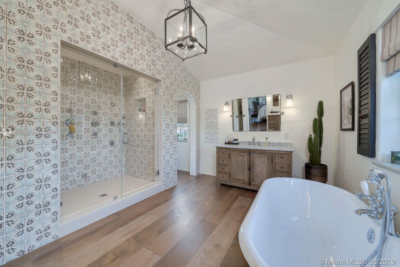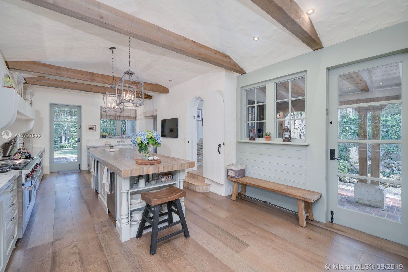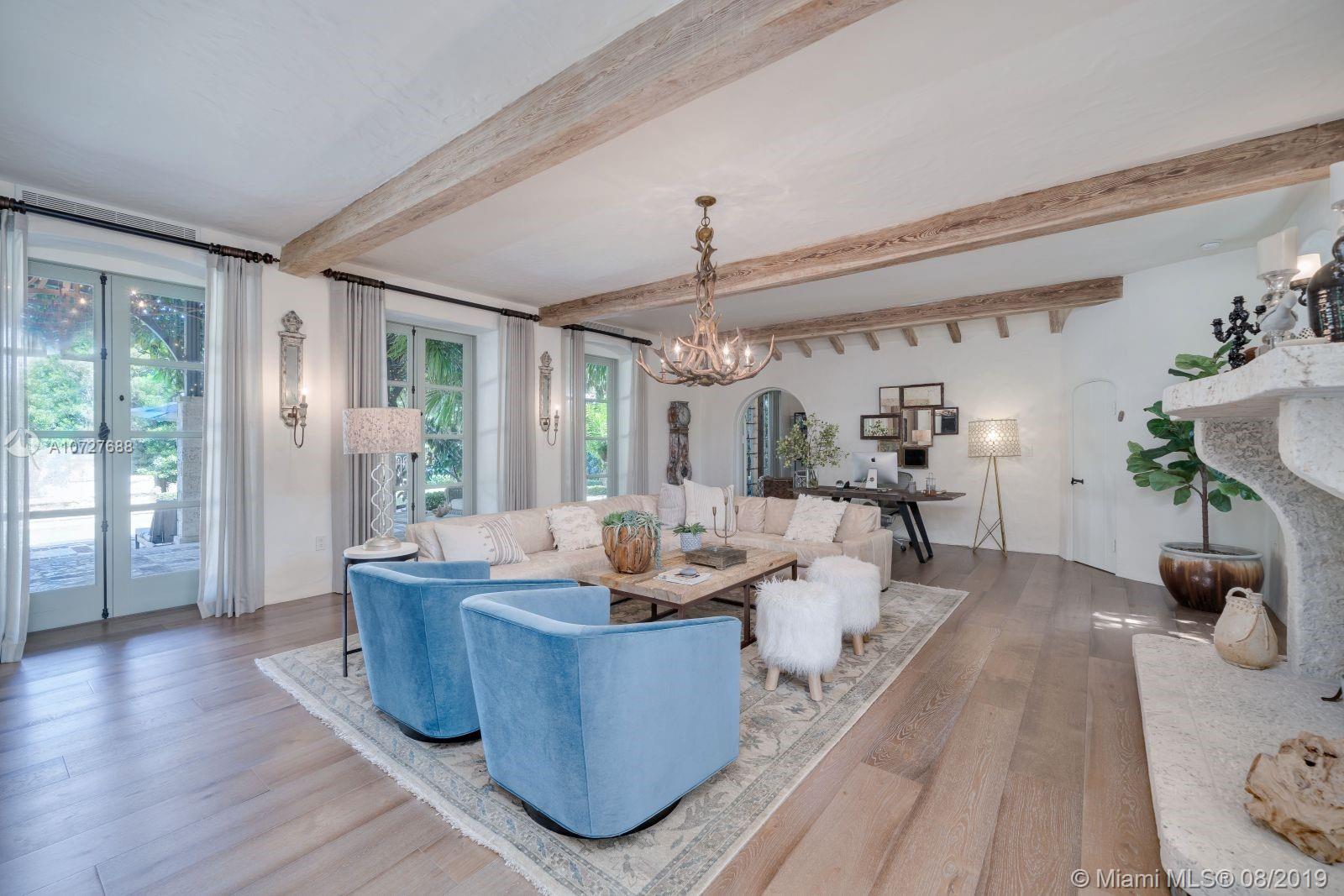 Designed with the laid-back luxury of California wine country in mind, this home is a study in a quiet elegance. Oversized lot is lusciously landscaped. Massive wood doors lead to a courtyard wonderland. Exquisite back patios, and terraced gardens extend the living area to the great outdoors. This is no ordinary setting! Inside you will find an extraordinary depth of detail. Gutted to the studs & restored to perfection. Italian wood plank & stone floors. The kitchen with 2 sinks & huge island/eat-in area opens to the courtyard & the formal dining rm. Master has His/Hers closets, sitting area and fireplace. 62 ft dock, newly capped seawall, 2-car garage & proper laundry room. Highest natural elevation on Miami Beach. Walk to the Ocean, restaurants, clubs, hotels, museums, the ballet etc.