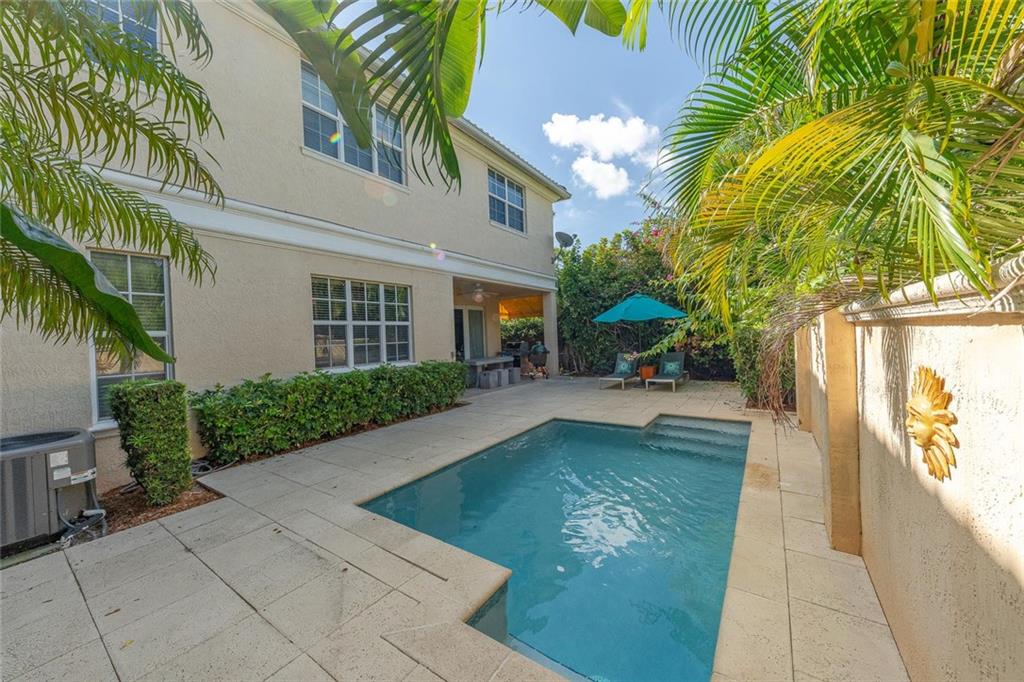 The advantages of a large town home with its own yard and pool, a wide driveway and great privacy. It lives and feels more like a single family house - over 2800 SF of living and boasts a powder room and study on the main floor - spacious loft overlooking the two story living room with grand windows for ample natural light. Custom built-ins throughout with formal living and dining rooms, a wide open Chef's style kitchen, breakfast area and large covered porch and pool. Generously sized Master has luxury bath and balcony + 2 guest rooms and guest bath. Other notables include impact windows/doors, 2-bay garage, a mid-sized pool surrounded by a patio and gardens. This location is perfect for its easy access to parks, movies, stores and the beaches.