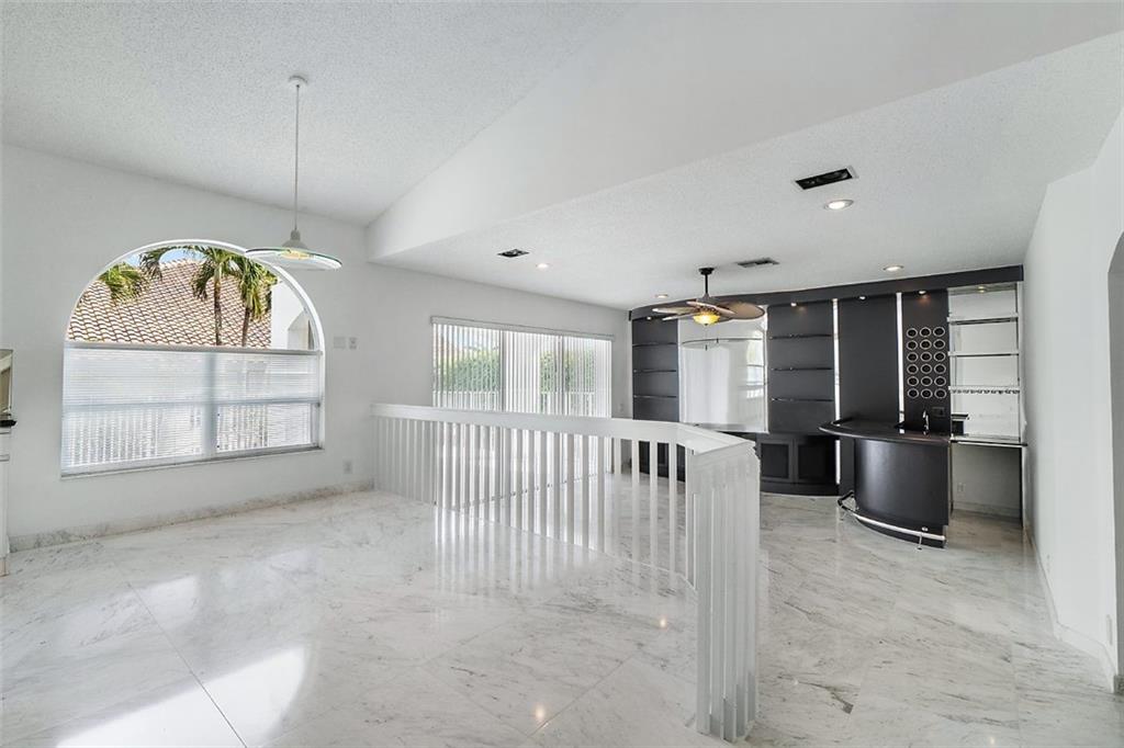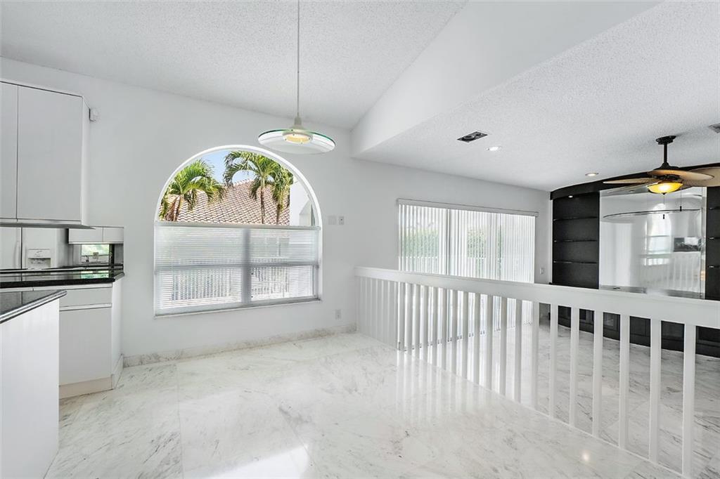 Beautiful 2 level contemporary home with lakefront views. Double door entry to foyer, with Carrara marble floors. Formal dining room. Kitchen Island, Jenn-Aire grill, Granite, New Stainless Steel Appliances. New Washer and Dryer. Great dinette for everyday meals overlooking the family room. Custom contemporary wall unit w/ wet bar. One bedroom on the first floor. Master bedroom w/en-suite bathroom. Large walk-in closet. Master bedroom's balcony for enjoying the lake view. Two nice size bedrooms on the second level as well as a full bathroom w/laundry chute. Accordion Hurricane Shutters. Top-rated schools. Reasonable HOA : Manned Gated, pool, and spa, full exercise room, Basketball, tennis courts, tot playground High-speed internet & Basic cable. AS-IS CONTRACTS ONLY. See supplement.