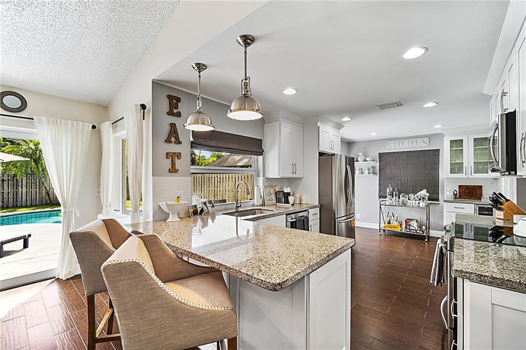 Absolutely Gorgeous! Welcome Home To This Perfectly Updated Pool Home In The Heart of Coral Springs! This 3 Bedroom, 2 Bathroom Home Features: Porcelain "Wood Look" Tile Throughout Living Area, Kitchen Totally Renovated With White Shaker Kitchen Cabinets, Subway Tile Backsplash, Granite Countertops, Samsung Chefs Stainless Steel Appls, Wine Cooler & Butlers Pantry, Impact Windows & Doors, Hi Hats in Kitchen, Both Bathrooms Have Been Totally Updated, Large Master Bedroom W/ 2 Walk In Closets, Ecobee Thermostat, Covered Patio & Fully Fenced Backyard With Beautiful Pool & So Much More!