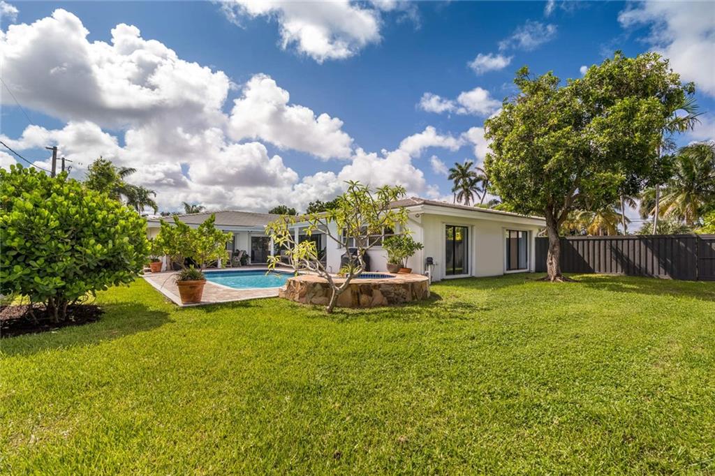 Beautifully renovated home, located east of Bayview Dr. on an oversized Coral Ridge corner lot. A house both stylish & comfortable, with modern finishes & artful details curated for family, entertaining, & relaxation. New open chef’s kitchen with gas range, Kitchenaid appliances, & oversized island. Triple split floor plan with 4 large bedrooms & 3 renovated, modern bathrooms. Expansive windows & sliding doors bring natural light into the large great room & master suite. Wrap-around covered loggia overlooks pool & spa. All spaces are designed with wide-plank, hardwood-like tile flooring, white marble accents, & thoughtful details. Conveniently located in the Bayview School District, close to all major Fort Lauderdale shops, dining, markets, with only moments to the beach.