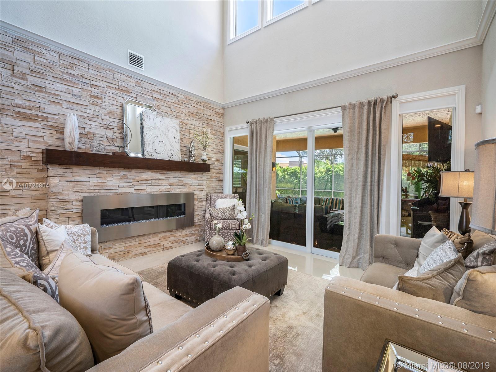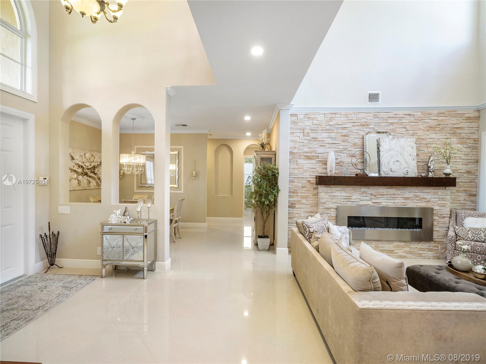 Introducing:Homemaking.Come Discover the Perfect Retreat from the rest of the busy world while creating intimacy&comfort for your loved ones.This is where it starts…with this 6bed/4ba HOME;Your perfect backdrop for your next lifelong memories.After a major remodeling in 2016/17 such as NEW: Impact Windows+Doors,cutting-edge A/C&Tankless water heater, Contemporary Flooring, Gorgeous Modern&Sleek Kitchen loaded w/prestigious appliances,Heated Salt Water Pool/Spa,Impressive Pool deck.Superb Stonewall w/Electric Fireplace,Crown Molding finishes,Sound system throughout, Wine cellar&build-in Humidor.A/C garage w/Epoxy floor&Wall Tec! The Outside is as majestic as the inside.NO neighbor on your left just lawn to play throw&catch. 24/7guard gated, commty pool, gym,clubhouse.Walk to all schools.