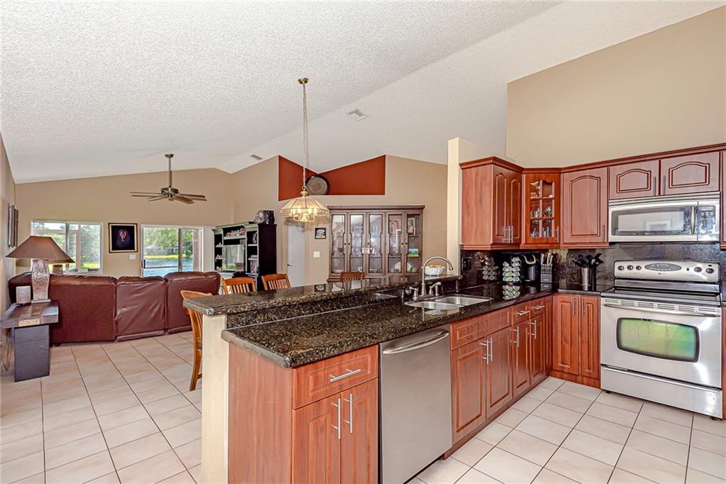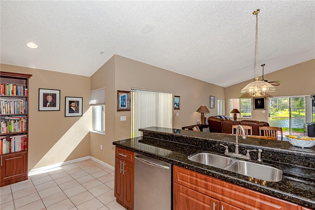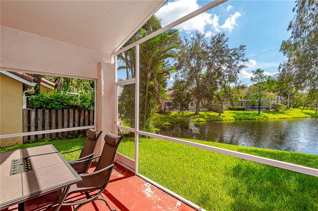 Rarely available lake front 3/2 in gated Sunset Cove in the heart of Plantation;full 2car garage; covered screened patio overlooking lake; 2010 s-tile roof; 2009 AC; 2006 water heater; 2005 storm shutters; remodeled stainless kitchen w/ granite counters opens up to living space with additional shelving in kitchen eat-in area; remodeled master bathroom with 2 sink granite vanity and spacious glass-enclosed shower; Association fee covers lawn front and back, sprinkler system maintenance, manned guard gate & community pool;Pool just steps away from home; Spacious concrete-stamped driveway; walk in closet in master bedroom