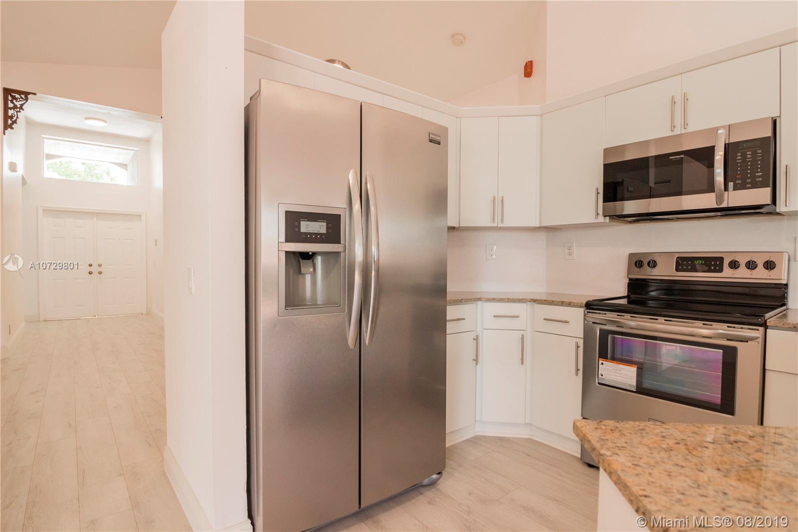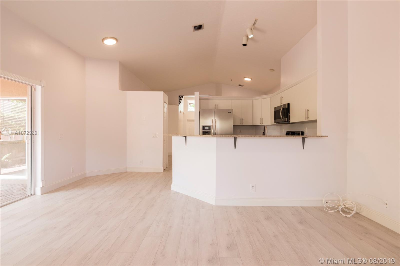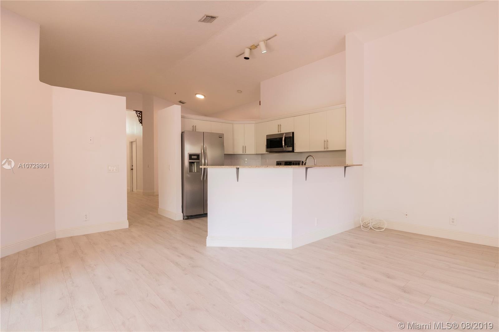 Stunning one-story home located in the private gated community of Vizcaya. 3 Bed / 2 Bath home has been renovated to feature all open concept living areas, as well as a new modern kitchen complete with a large counter area, all new SS appliances . The home is with high ceilings,new floors, and New A/C. Best of all the home displays a spaciously fenced & easy to maintain backyard perfect for any occasion.