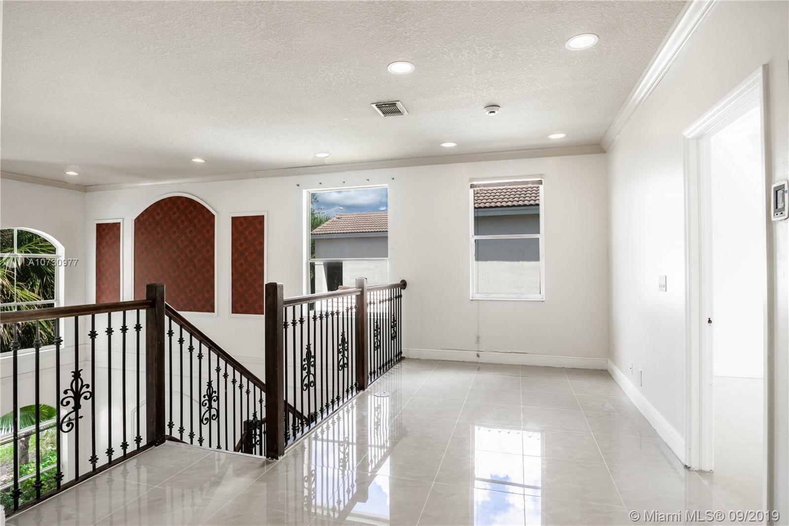 Beautiful and spacious single family home located in quiet tree lined street. Lots of nature light, with high volume ceilings and recessed lighting throughout the house. First floor has foyer entrance, living area, decorative iron cast railing stairs. Open concept kitchen with granite countertops, dining room and family are overlooking backyard, half guest bathroom. Second floor has new italian porcelain tile throughout, huge master bedrooms with regular and walk-in closet, master bathroom has separate shower, bathtub, dual sinks and enclosed private toilet. Upstairs are two spacious bedrooms and spacious loft/office area looking down on living room. Big and enclosed backyard perfect entertaining and outdoors cookouts. Home is nestled in gated community.Welcome Home