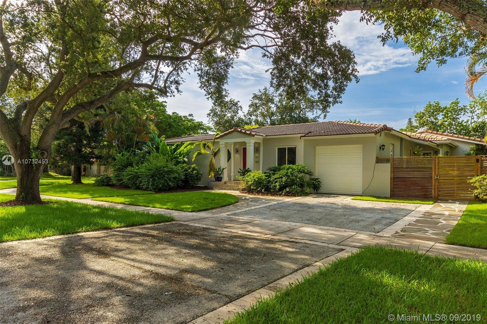 5 bedrooms and 4 full baths in this renovated Miami Shores home. Big corner lot, fenced yard with patio, outdoor kitchen and beautiful pool. Spacious living room ,dining room open to the kitchen and family room overlooking the pool and garden. The kitchen is updated with stainless steel and granite . Wood and tile floors, impact windows and doors, two zones of central a/c. Master bedroom overlooks the pool and garden, has big walk-in closet and new bathroom. Big inside laundry room and utility room, attached one car garage. Move in condition.