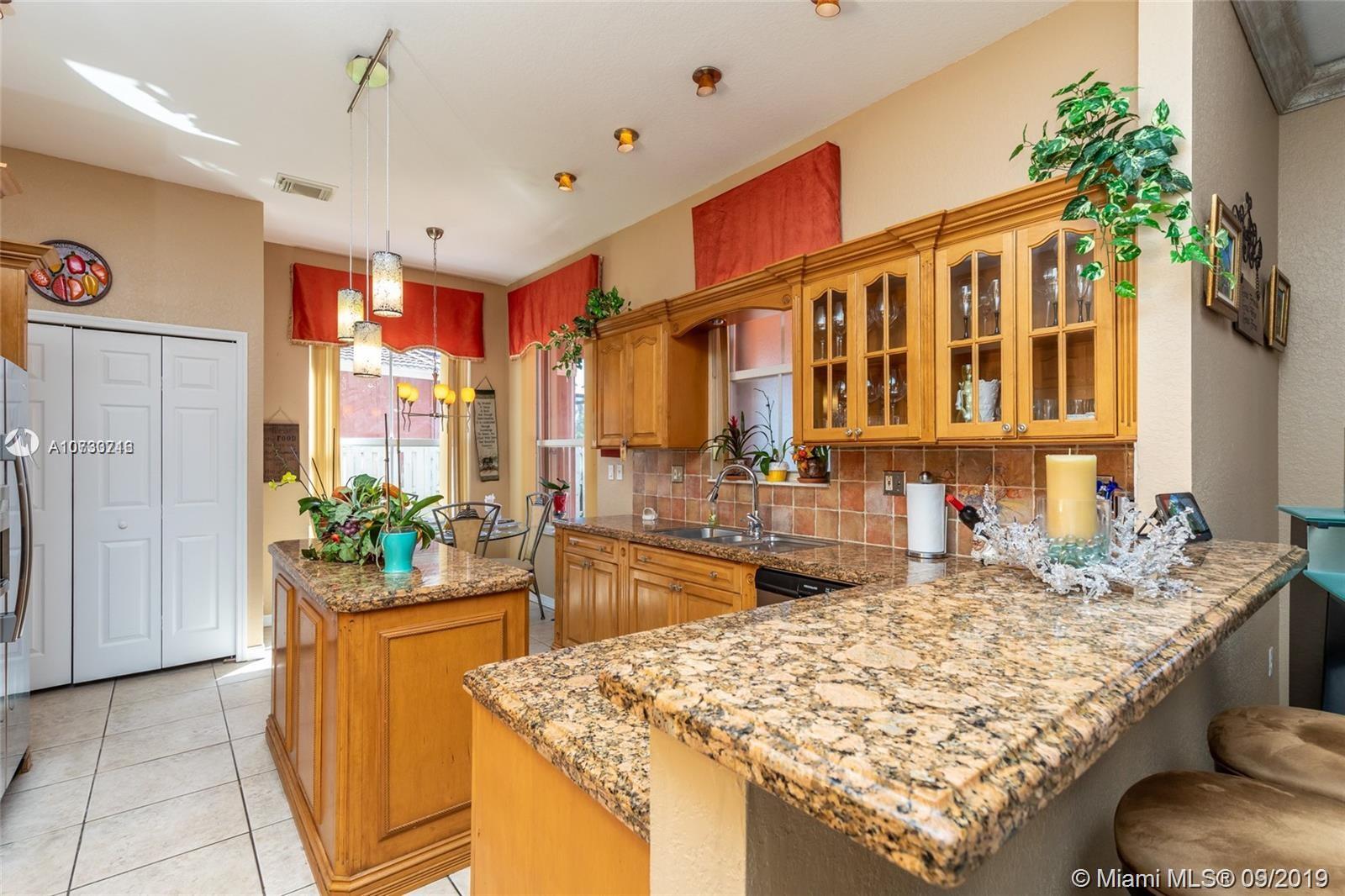 SPECTACULAR 4 BEDROOM, 2 1/2 BATH HOME, 2 CAR GARAGE WITH PANTRY AND CABINETRY THROUGHOUT. THE HOME IS PROTECTED BY IMPACT WINDOWS W/ARGON GAS AND IMPACT DOORS WITH 25 YEAR WARRANTY, 6 WINDOWS ON FIRST FLOOR ARE PROTECTED WITH ACCORDION SHUTTERS NOT IMPACT. FORMAL LIVING AND DINING EASILY FLOWS INTO LARGE FAMILY ROOM OVERLOOKING THE PATIO AND OVERSIZE KITCHEN WITH GRANITE COUNTER TOP, S.S. APPLIANCES AND BREAKFAST AREA OVERLOOKING OVERSIZE BACK YARD, PLENTY OF ROOM FOR POOL. ALL 4 BEDROOMS ARE ON SECOND FLOOR, LARGE MASTER BEDROOM WITH AN IMPRESSIVE WALK IN CLOSET FOR THAT CLASSY LADY, BATHROOM HAS SEAMLESS SHOWER GLASS DOORS AND LARGE TUB W/JETS, LAMINATE FLOORS ON STAIRS AND THROUGHOUT SECOND FLOOR. HOUSE IS IN IMPECCABLE CONDITIONS READY TO MOVE IN.