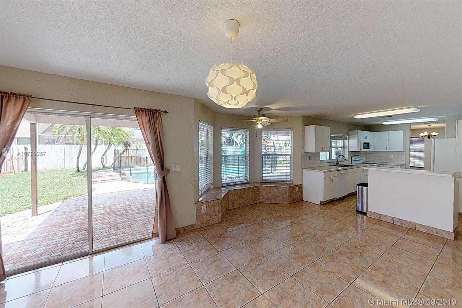 Large family home in gated Crystal Bay in Silver Lakes, located in the prestigious west side of Pembroke Pines with highly desirable "A" rated schools. 1st floor bedroom and full cabana bath. Formal Dining and Living, Open Family Room, Breakfast nook and Kitchen features amazing views of the lush and tropical covered patio and pool areas. First floor has ceramic tile flooring leading up the stairs to the 4 additional bedrooms (laminate flooring). Master en suite has 2 walk in closets and a large bathroom with double vanities. Huge yard with covered paved patio area perfect for entertaining. Plenty of storage.