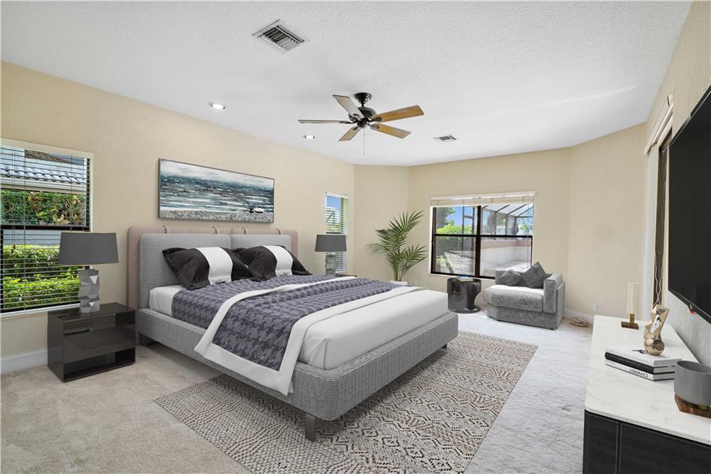 Beautiful 5/4 home on sits on 12th hole with pool/spa in prestigious Eagle Trace. Home offers large kitchen with granite counters and center cooking island. Large windows expose gorgeous views. Stone fireplace in over sized family room. Large screened in pool overlooks golf course and lake. 2006 Roof. New water heater. 2 year old A/C. New pool pump motor.