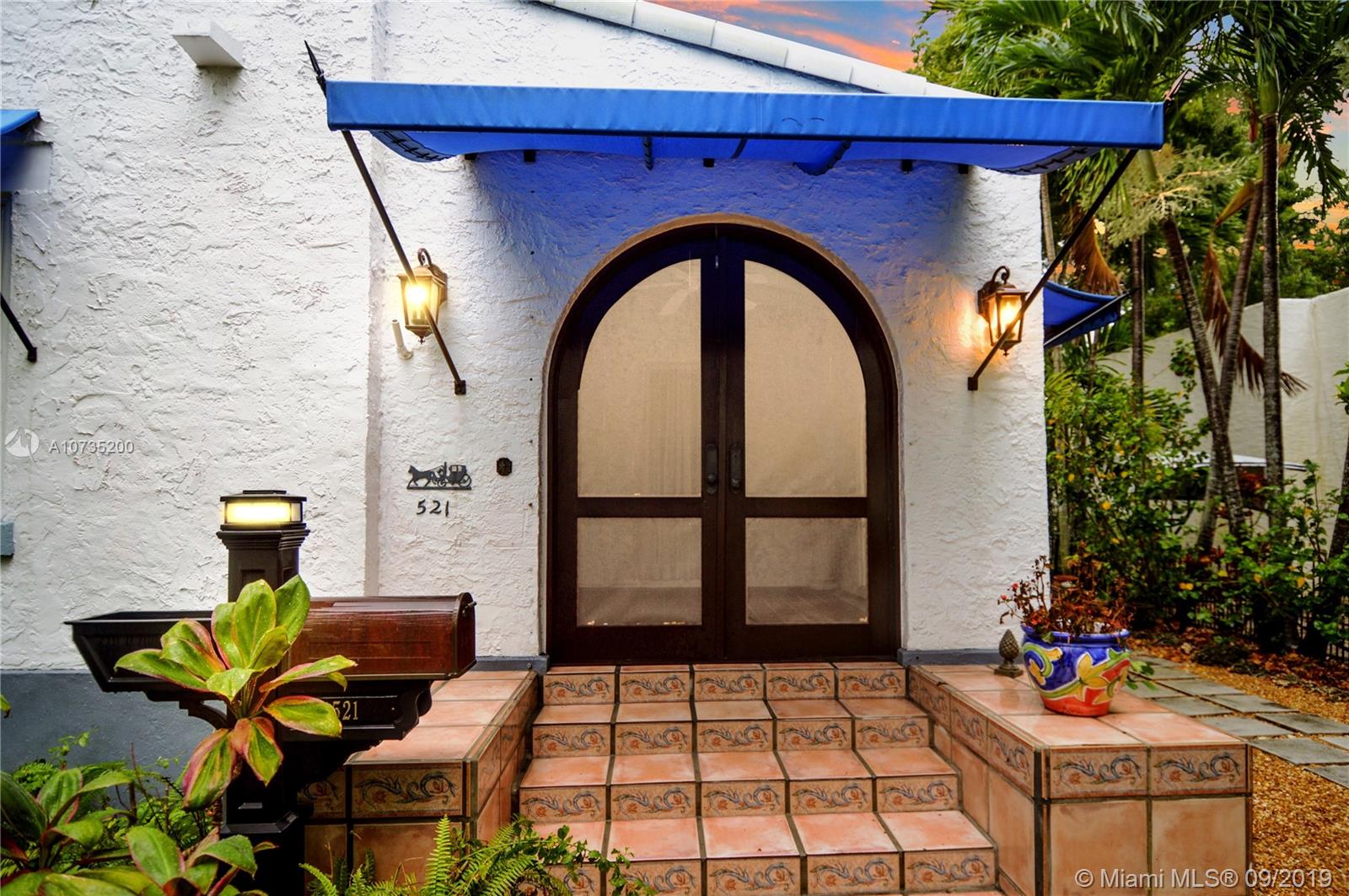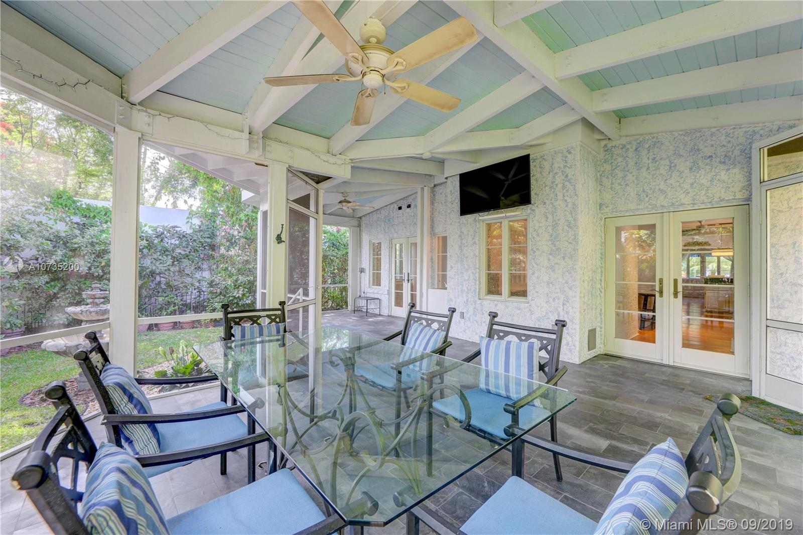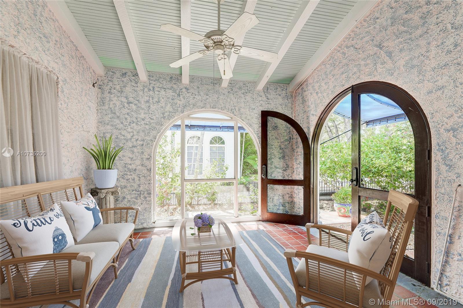 This historically designated 1920's classic Old Spanish is way bigger than it appears from the street! Charming to the max 2/2 with den, impact windows and doors, foyer porch entry, updated kitchen and baths, high ceilings, original Dade County Pine floors, fireplace, original ceiling picture moldings and hallway transom windows. Very special and super spacious screened great room across the back of the home - ideal place to gather for dinner parties or to watch sports on the flat screen TV. Master bedroom has walk-in closet, new bath and separate room that could function as a den, office, nursery or dressing room. Original architect was the famed H.G. Fink. Desirable close to downtown Coral Gables location - EZ walk to restaurants, book stores, cafes and shops.