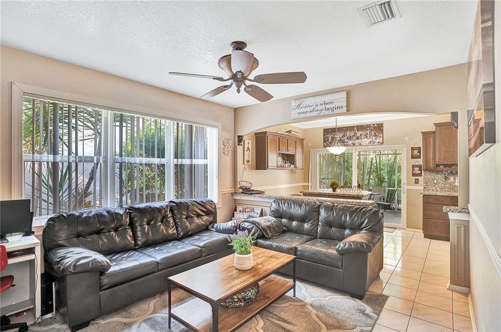 Dream home , all has been done in recent years ,tile roof only 4 years old, AC only a couple years old. Hurricane impact windows and doors as well as hurricane accordion shutter. This is a 3/2.5 that is the model that can be converted easily into a 4th bedroom (the builder offered this as an option). Soaring Cathedral ceilings upon entrance give this already large home a grand entrance. The front and back of the house has lush landscaping, backed up to canal you can fish in . The Florida room overlooking the pool (most homes in community do not have pools) is an extension of the living space! Upgrades galore throughout!